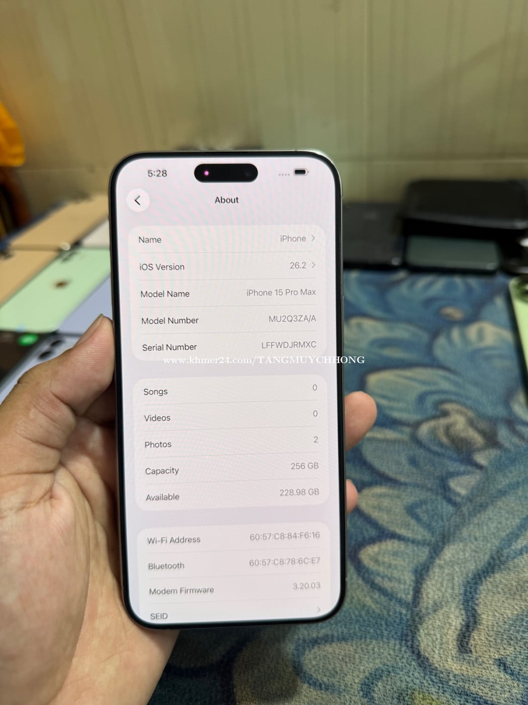 iPhone 15 Pro Max ZA Sim2 256G សំណុំសុីន ស្អាតដូចរូប 730$