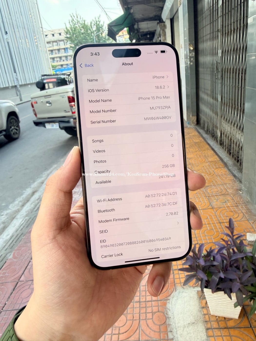 iPhone 17 Pro Max ZP 256g តួរស្អាត99% ថ្ម85% សានុំសុីន តម្លៃ 750$ Telegram: 087233xxxClick To Call