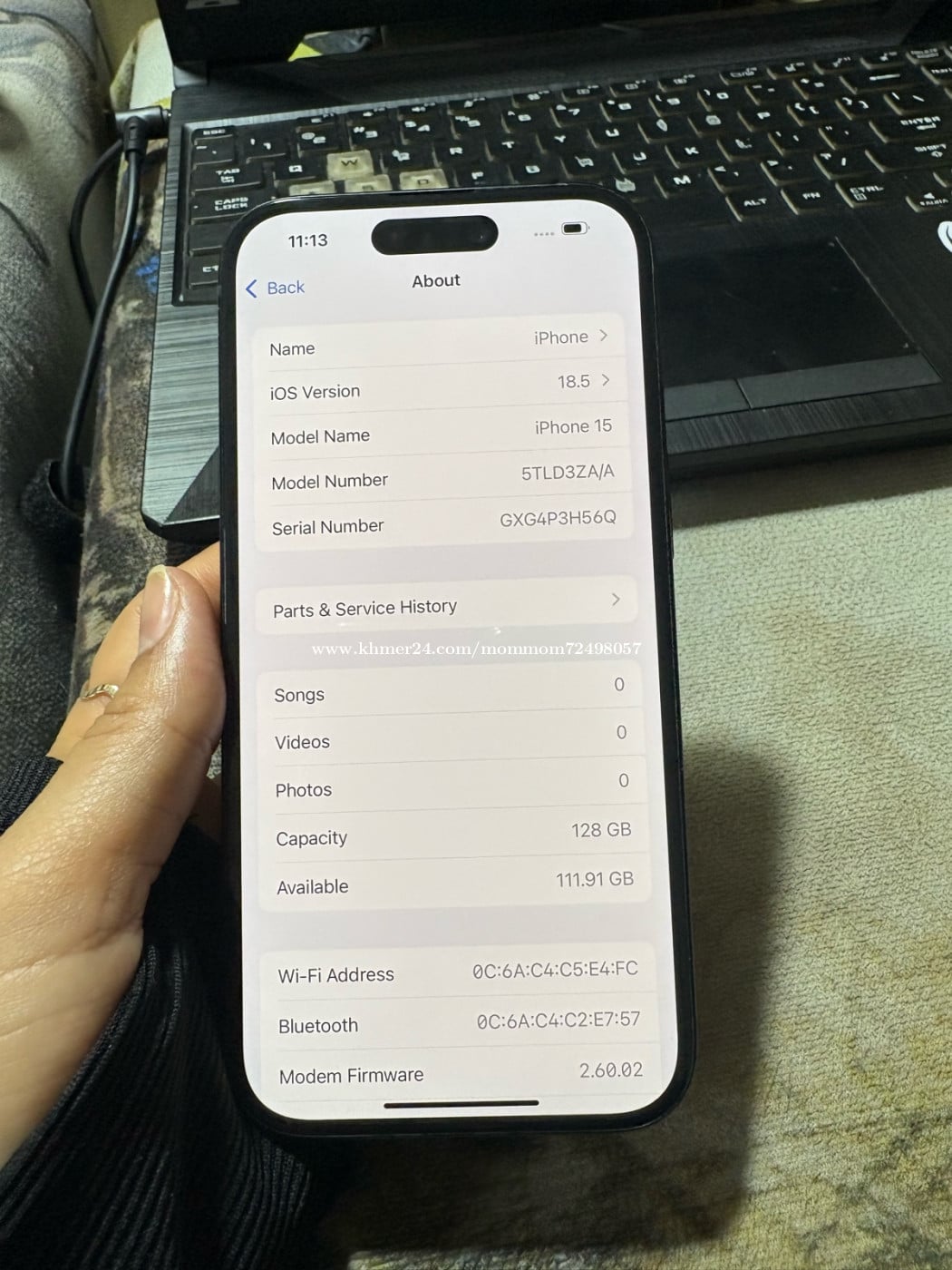 iPhone 15 ZA/A 128G សុំណុំហ្សុីន ប្ដូរតែថ្មមួយគ្រាប់