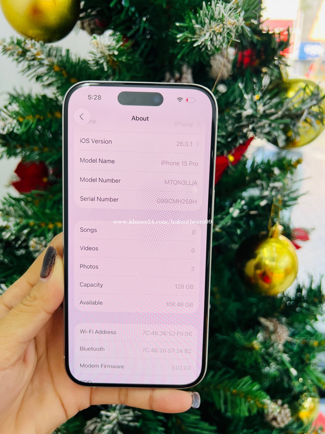 iPhone 15pro 128g LL/A សុំណុំសុីន ស្ទើរកញ្ចក់តិច តម្លៃ 640$ ធានា1ខែ🤍😍