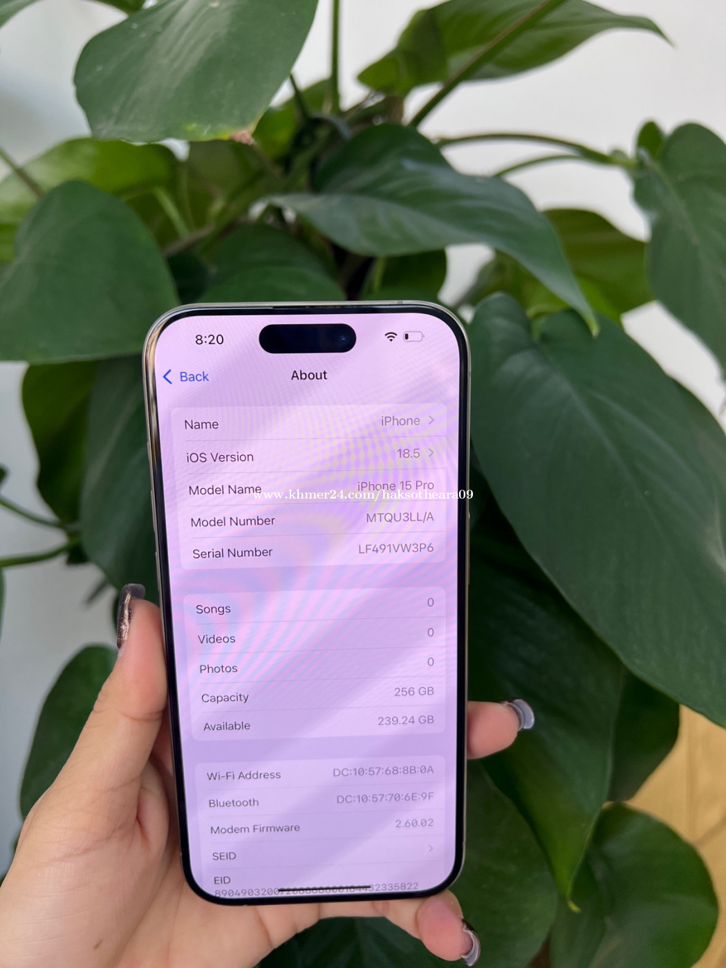 iPhone 15pro 256g LL/A សុំណុំសុីន ស្អាត98% តម្លៃ680$ 🩶