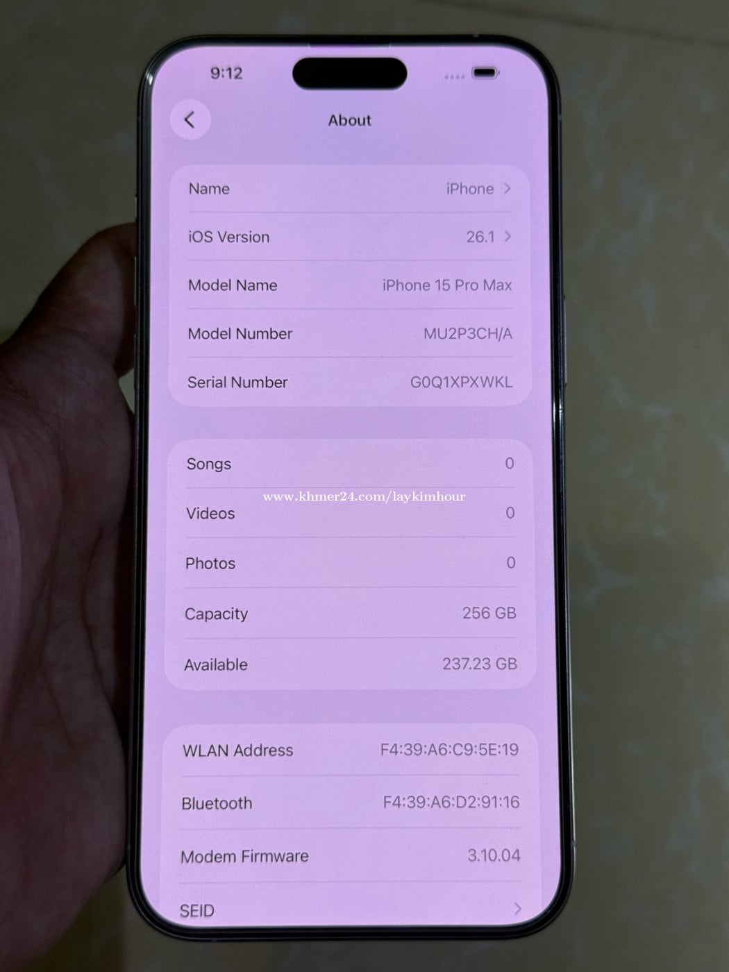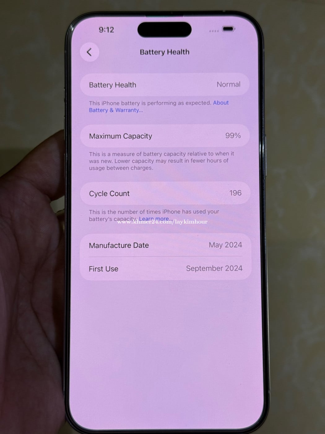 Iphone 15Pro Max, CH/A (Sim2) , 256GB Cycle Count 196 times តួ 98% កញ្ចក់ ស្អាត ថ្ម 99% សំណុំ ណែន នាធា 2 សប្តាហ៍