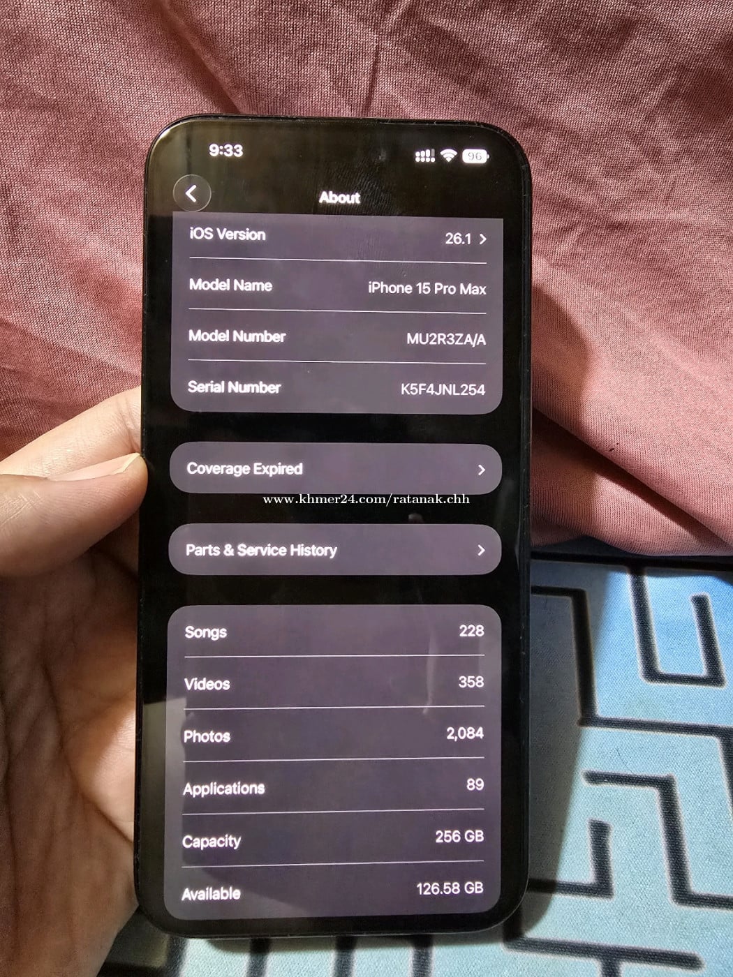 iPhone 15Pro Max ZA - Color Blue - Storage 256gb Sim2 - ធ្លាប់ប្ដូរអេក្រង់ Original - Only Phone Free Case & Screen