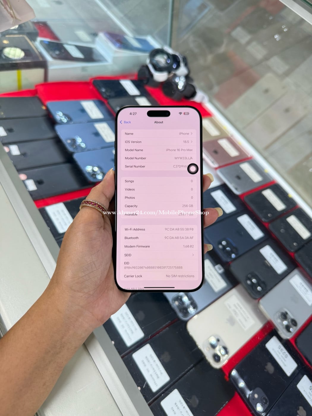 iPhone 16 Pro Max 256G LL/A Esim សំនុំហ្ស៊ីន មួយទឹកអាមេរិក តម្លៃ: $965 (តម្លៃមិនចចារ) Free: ឆ្នាំងសាក, ស្រ្គិន & ខេស(ធានា1សប្ដាហ៍) ទីតាំង: ផ្លូវ160 , ស្តុបទេពផន , ភ្នំពេញ 📲Tel: 098200xxxClick To Call 📍Maps: https://maps.app.goo.gl/8YoH7dAZ6D2egm9v7?g_st=ic