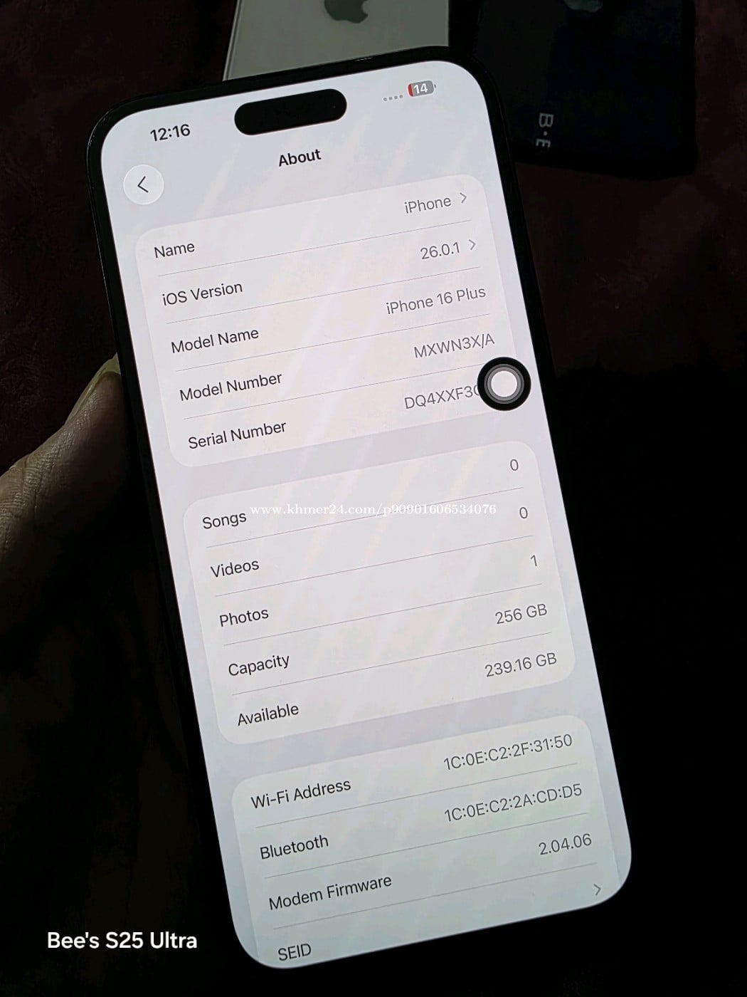 iPhone 16+ 256g X/A សំនុំណែន ថ្មស៊ីន 100% ស្ទើតួរលក់ 585$ Tel: 093989xxxClick To Call