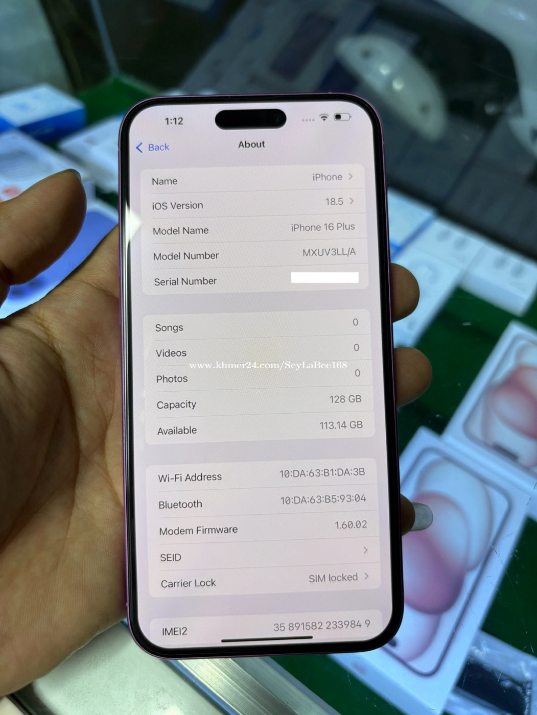 iPhone 16 Plus 128G មួយទឹក lock sim ប៉ុន្តែមិនបាច់ទ្រាប់ទ្រនាប់ស៊ីម ដាក់ស៊ីមប្រើយកម៉ង ( សុីម2 ) Free Case, Screen, ឆ្នាំងសាក អ្វីដែលអ្នកឃើញគឺជាអ្វីដែលអ្នកទទួលបាន អីវ៉ាន់នៅក្នុងរូបយ៉ាងម៉េច នៅក្រៅគឺយ៉ាងនោះ។ ធានាលើ ថាច់ និងម៉ាស៊ីន 15ថ្ងៃ ទីតាំង ទឹកល្អក់៣ ទួលគោក ភ្នំពេញ Tell:086908xxxClick To Call Telegram Tell:0888708xxxClick To Call Telegram: https://t.me/SeyLa_Bee Channel: https://t.me/iPhoneBSL