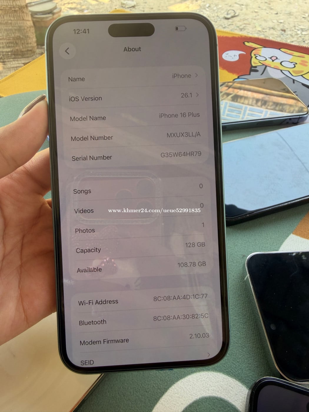 iPhone 16 plus LL/A Battery 100% Storage 128G សាណុំសុីន ស្អាត 99%
