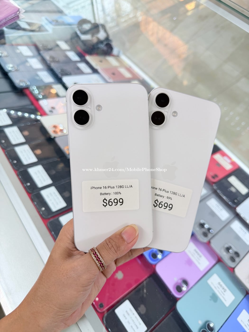 iPhone 16 Plus 128G LL/A Esim សំនុំហ្ស៊ីន មានស្កុក គ្រប់ពណ៌ មួយទឹកអាមេរិក តម្លៃ: $699 (តម្លៃមិនចចារ) Free: ឆ្នាំងសាក, ស្រ្គិន & ខេស(ធានា1សប្ដាហ៍) ទីតាំង: ផ្លូវ160 , ស្តុបទេពផន , ភ្នំពេញ 📲Tel: 098200xxxClick To Call 📍Maps: https://maps.app.goo.gl/8YoH7dAZ6D2egm9v7?g_st=ic