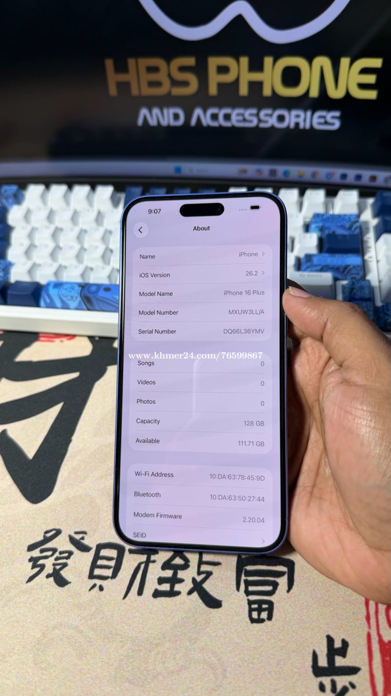 iPhone 16 Plus 128G មួយទឹកគេ lock sim ប៉ុន្តែមិនបាច់ទ្រាប់ទ្រនាប់ស៊ីម ដាក់ស៊ីមប្រើយកម៉ង (ប្រើបានស៊ីម 2) តម្លៃ: 5xx$ Free Case, Screen, ឆ្នាំងសាក ( ខ្សែសាក Original ) អ្វីដែលអ្នកឃើញគឺជាអ្វីដែលអ្នកទទួលបាន អីវ៉ាន់នៅក្នុងរូបយ៉ាងម៉េច នៅក្រៅគឺយ៉ាងនោះ។ ធានាលើ ថាច់ និងម៉ាស៊ីន ១៥ថ្ងៃ 📍ទីតាំង: ផ្សារដីហ៊ុយ, ផ្លូវ58P, ភ្នំពេញ 📩Telegram: 089778xxxClick To Call 🔔Telegram Channel: https://t.me/hbsphone ☎️ Cellcard: 089778xxxClick To Call
