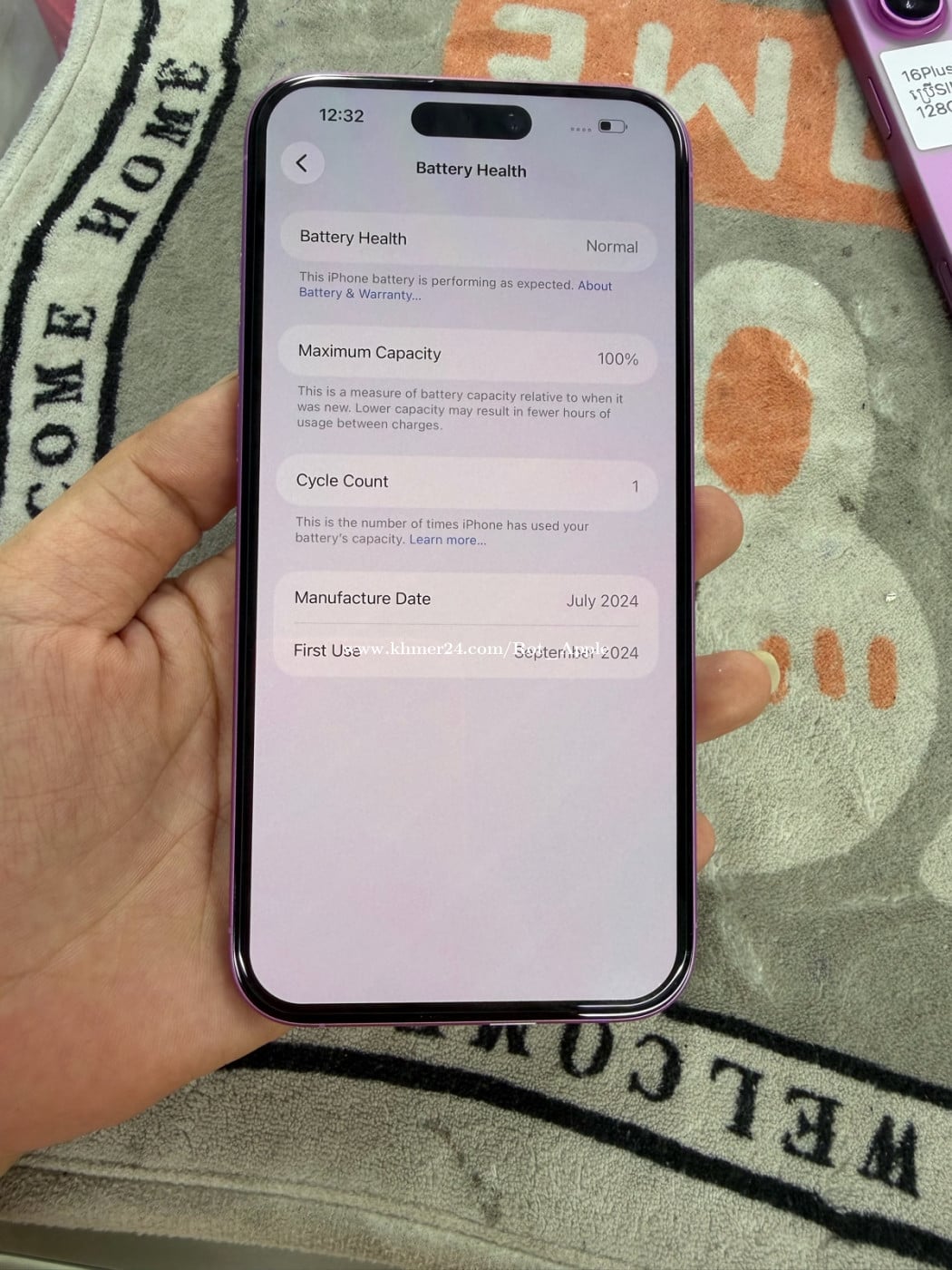 Iphone 16 Pluse Memory 128G battery health 100% សាកថ្ម បាន 1 ដង សានុំ ហ្សីន