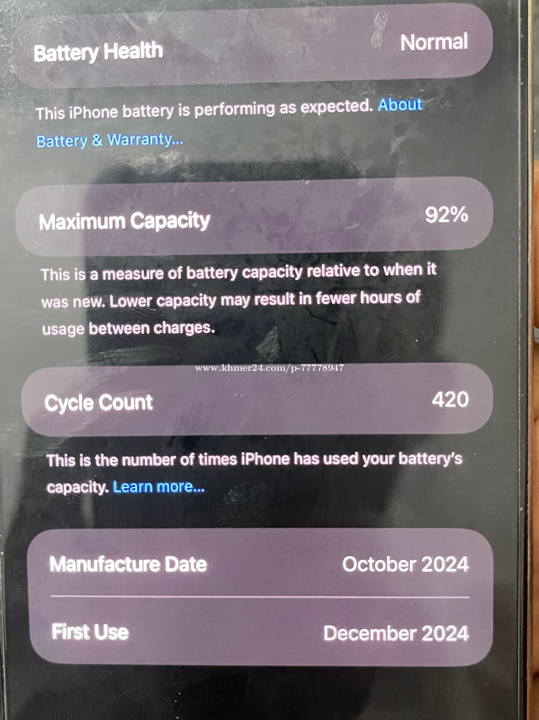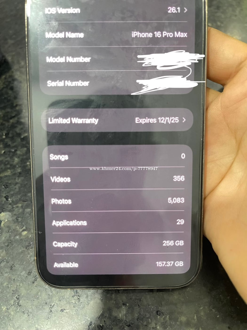 iPhone 16 pro max ZA Color: Desert Battery 92% Price $900 negotiable Phnom Penh មានខ្សែ និងប្រអប់ 077778xxxClick To Call telegram