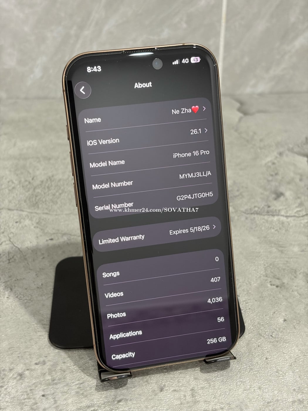 iPhone 16 Pro 256g LL battery 100% cycle 130 សំណុំ zin ខ្ចីញ៉េញ Telegram 070259xxxClick To Call