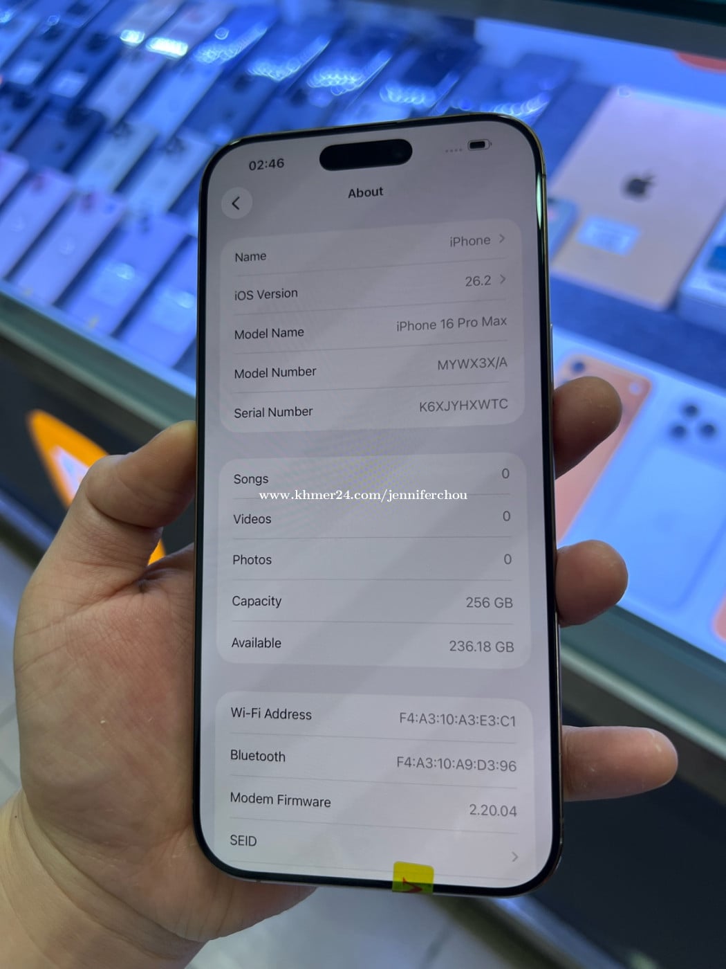 16 Pro max clear stock✨ Sim + esim X/A 256GB battery 100% តម្លៃត្រឹមតែ 880$ តែប៉ុណ្ណោះ📥😍 🎁 Free Case, Screen, ឆ្នាំងសាក 🏷️ធានាទៅលេីម៉ាសុីនរយៈពេល 3 ខែ✨ 🏘️Telegram Group: https://t.me/apple007vipphone ☎️Telegram: https://t.me/Apple007VIP 📍ទីតាំង: ផ្ទះលេខ 567, ផ្លូវកម្ពុជាក្រោម(ជិតស្តុបសន្ធរមុខ) ក្បែរABA Google maps: https://maps.app.goo.gl/niQoQhypffRDYjbo9?g_st=ic 📲 Tel : 0964094xxxClick To Call