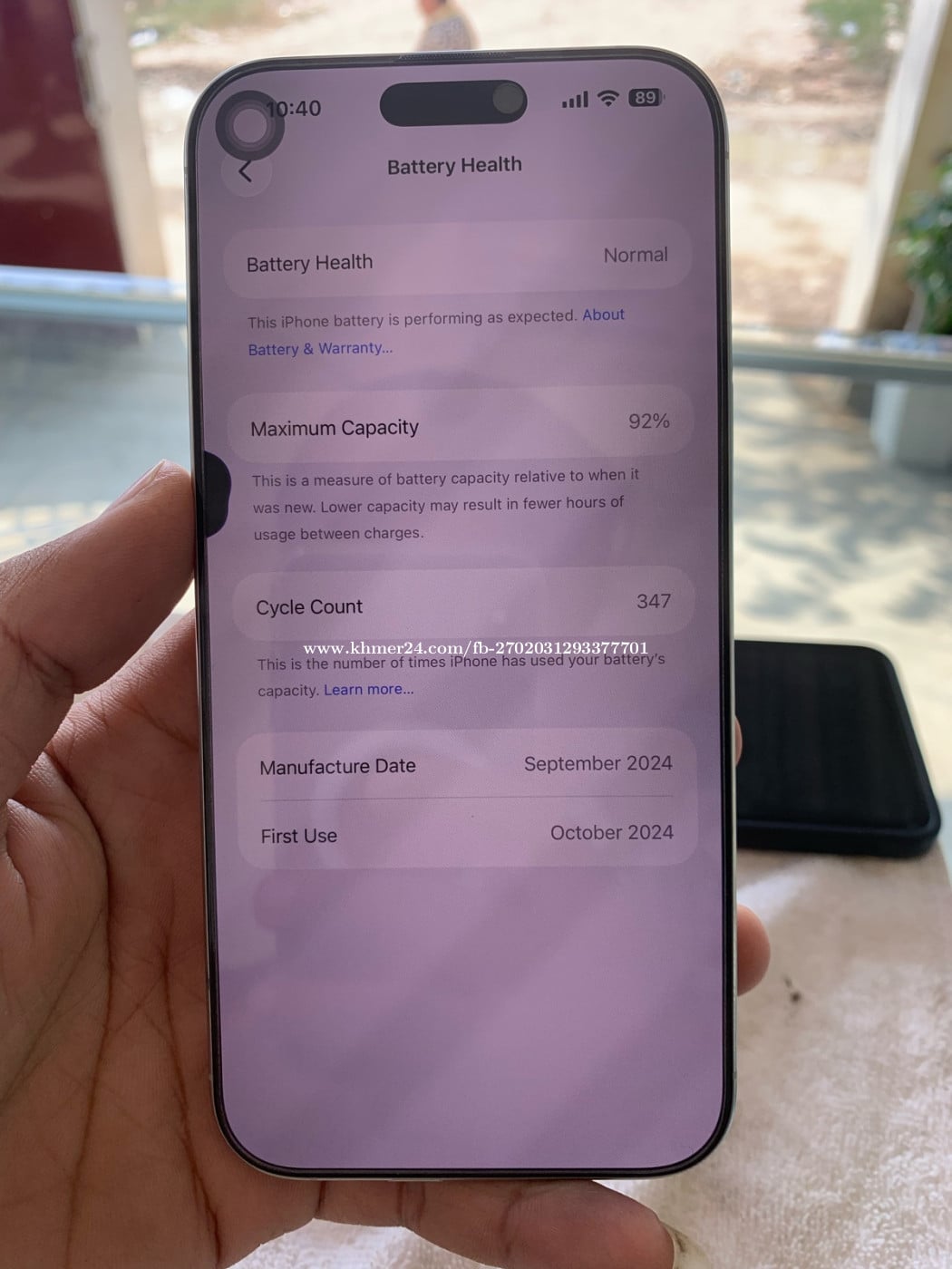 IPhone 16 Pro 256GB តួរស្អាត99%សានុំហ្សុីនទាំងអស់អត់ទាន់មានលោតServiceមួយទេ✅ បញ្ជាក់:អ៊ុចអេក្រង់ដូចរូបបន្តិច Lock SIM តែការប្រើប្រាស់បានល្អធម្មតា✅ តម្លៃ625$ ទីតាំងនៅកំបូល 016441xxxClick To Call