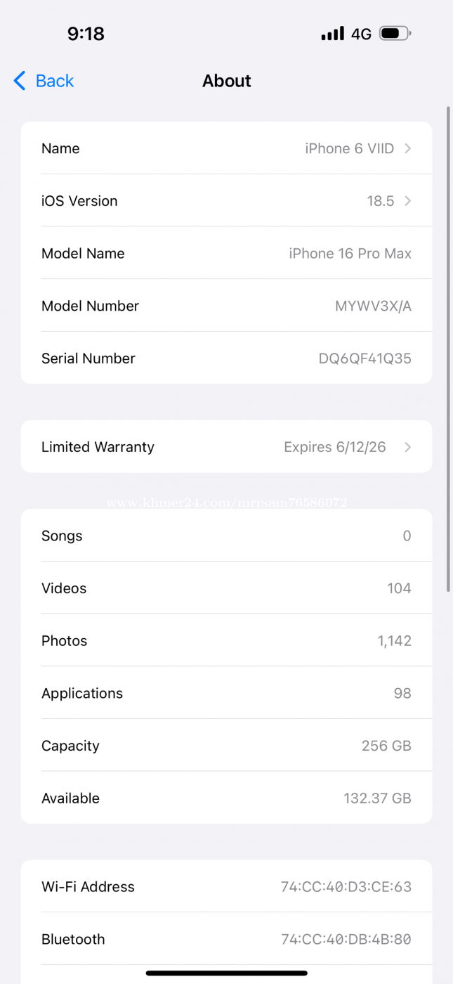 លក់ iPhone 16 Pro Max 256GB X/A ប្រើថែណាស់ អ៊ុតស្កុតការពារ នឹងនៅធានា 6 ខែ