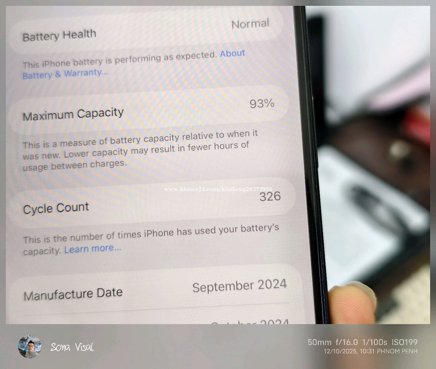 iPhone 16 Pro Max 256GB KH 97% ស្ទើរតួ ខេសសុី ថ្ម93% only phone