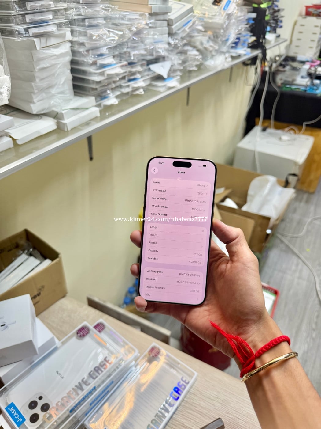 iPhone 16 pro max ZP 512GB សានុំសុីនណែន ថ្មនៅ93% ធានាម៉ាសុីនសានុំសុីនណែន ធានាតម្លៃ 900$ ទើបកាត់ពីភ្ញៀវបាន មានតែមួយដើមទេ លឿនៗ