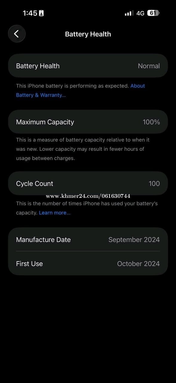 iPhone 16 Pro Max LL/A Storage: 256GB Phone only Battery health: 100%, cycle count 100 Condition: Excellent like new