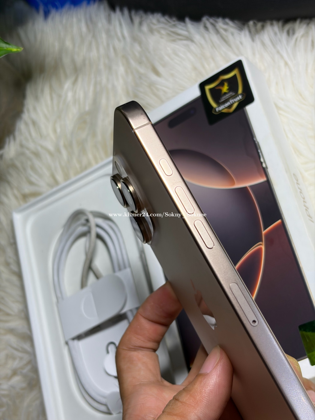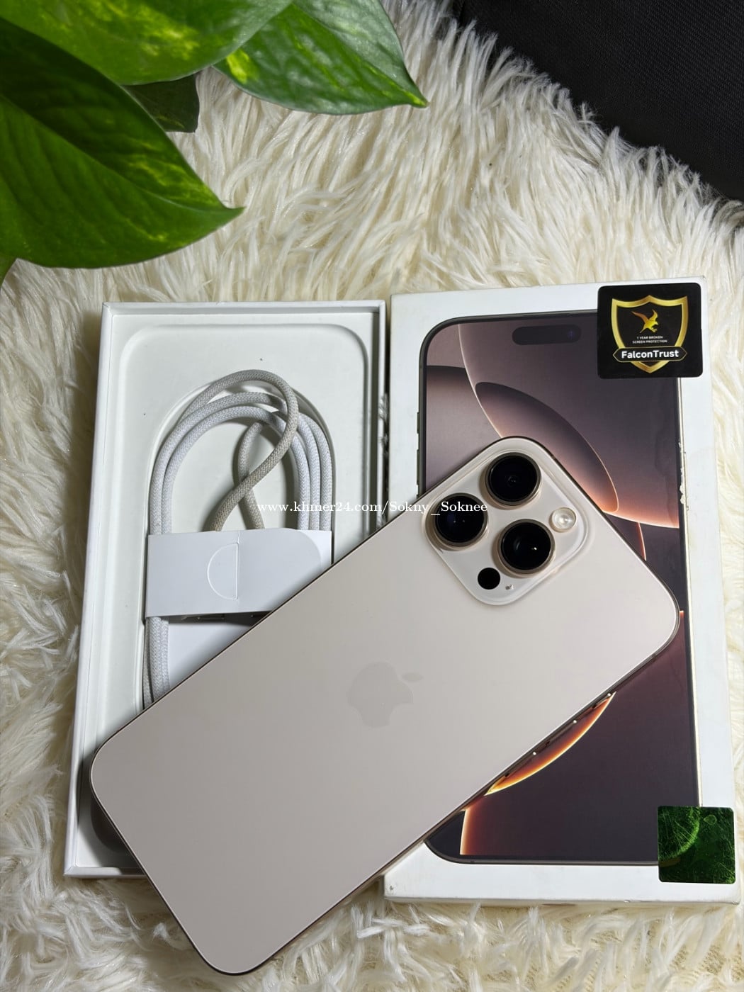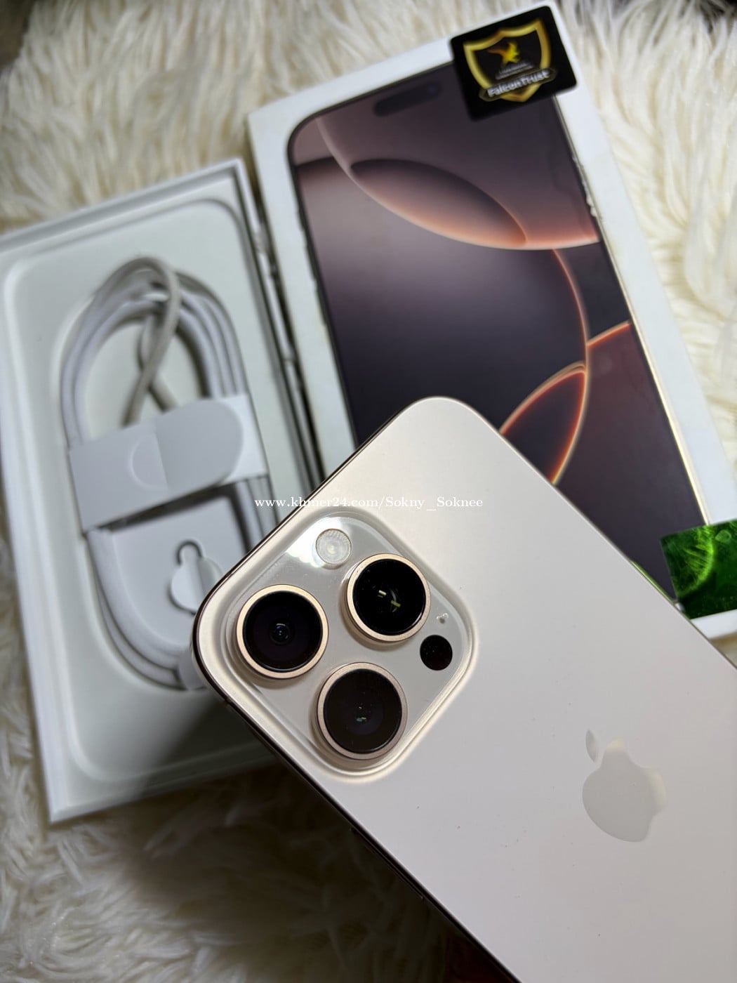 iPhone 16 Pro Max 256G Desert Titanium ក្រុមហ៊ុននៅធានា 2ខែ Falcon មានប្រអប់ ខ្សែរសុីន ទីតាំង ផ្សារចោមចៅ