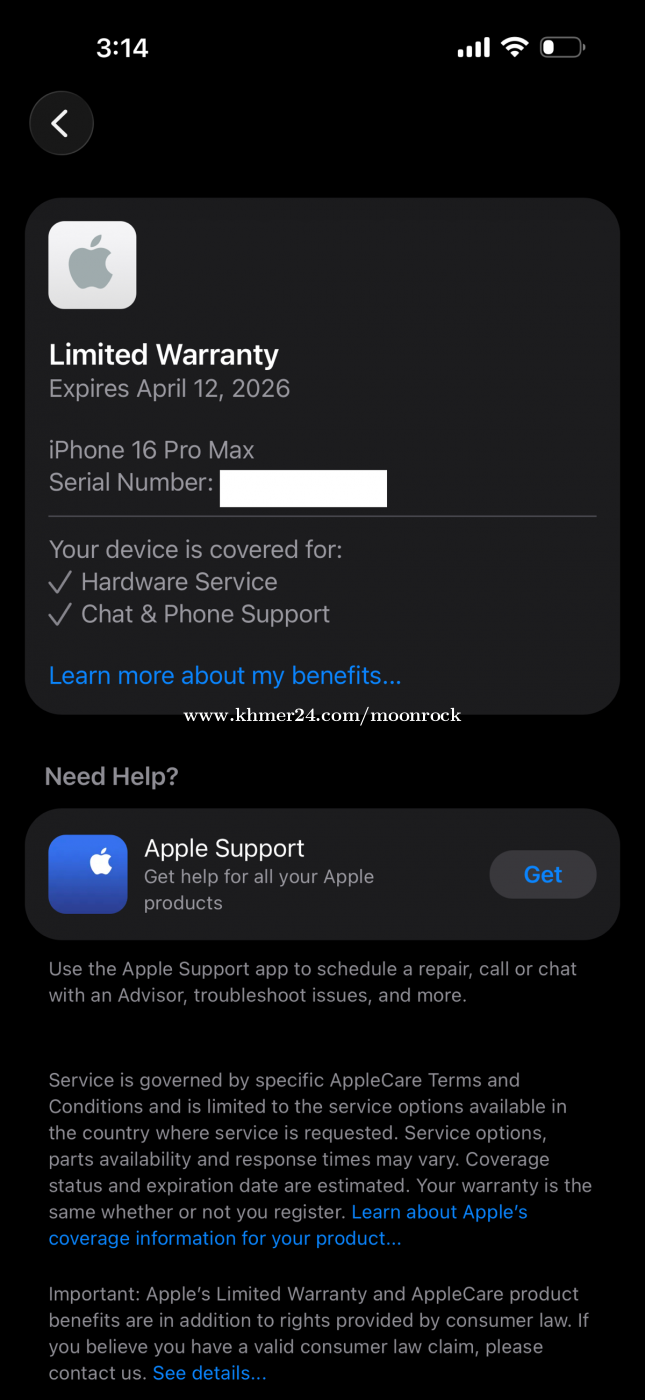 នៅធានាពីក្រុមហ៊ុន Falcon ដល់ខែមេសា 2026 (ធានាលើការជួសជុល និងផ្លាស់ប្តូរអេក្រង់ថ្មី)