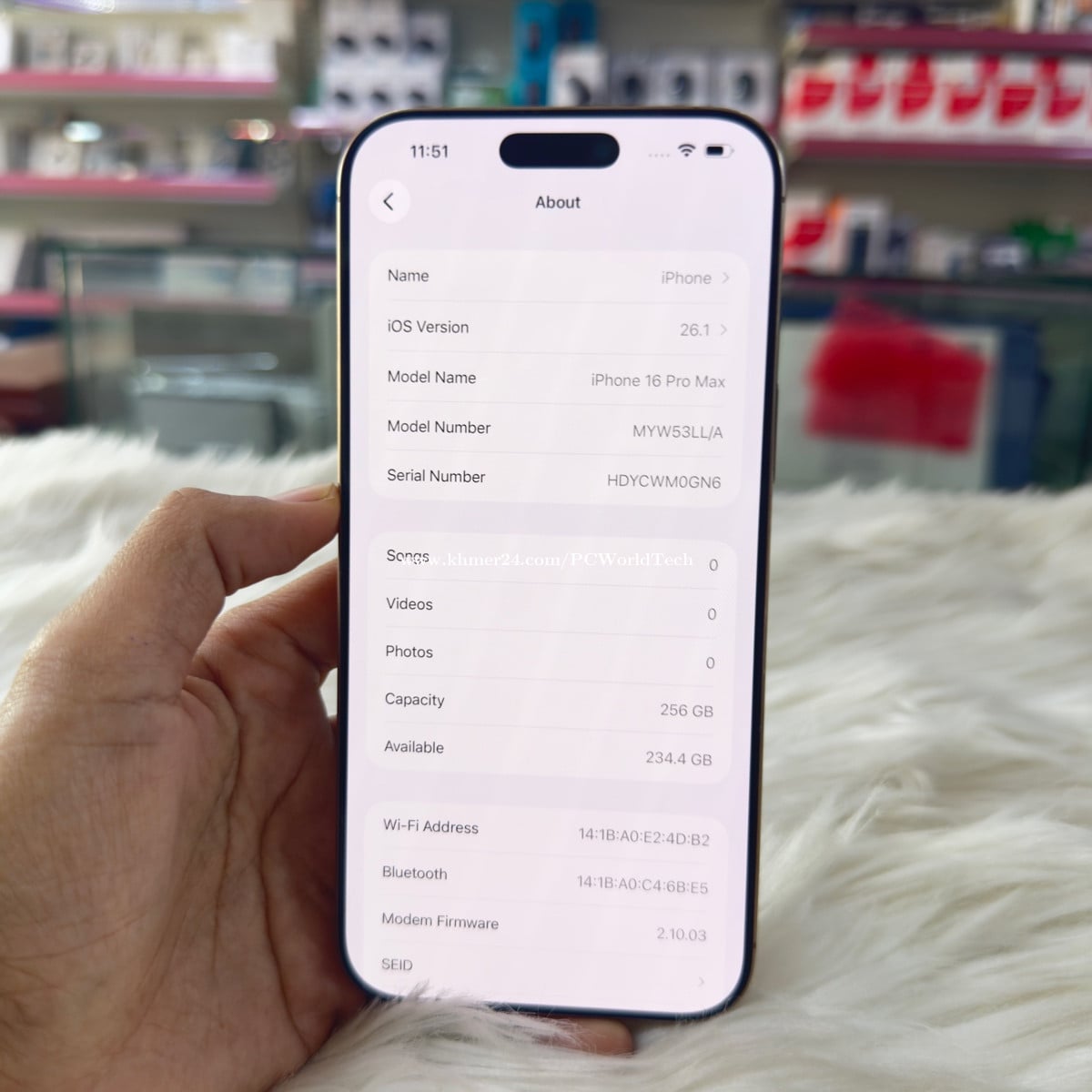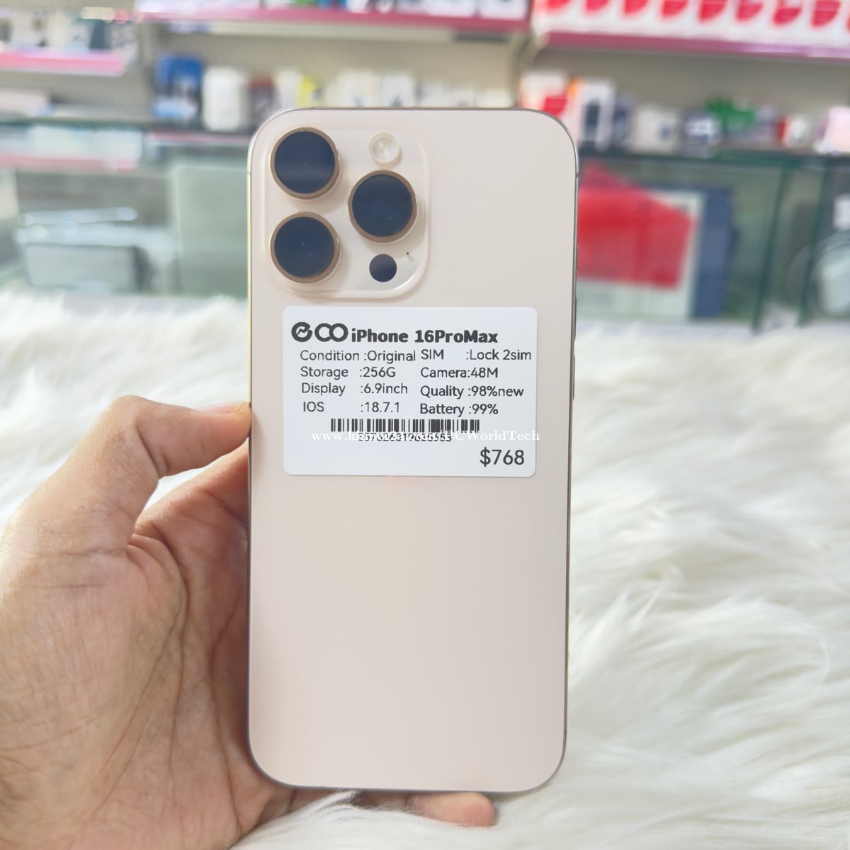 iPhone 16ProMax Condition :Original Storage. : 256G Display :6.9inch IOS. : 18.7.1 SIM. Lock 2Sim Camera 48M Quality 97%new Battery. 99%