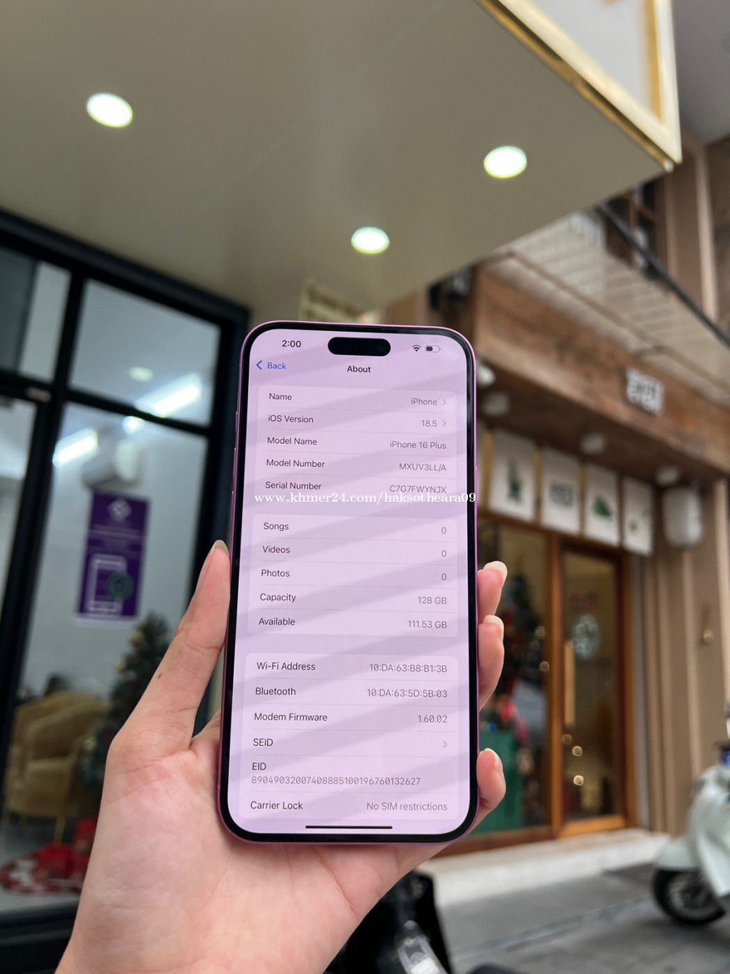 iPhone 16plus 128g LLA មួយទឹកស្អាត99%coler pink តម្លៃ 720$🥰🥰