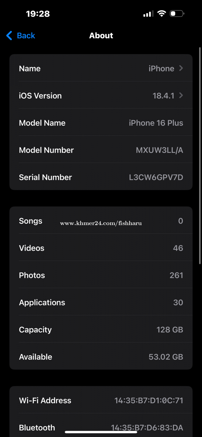Sell iPhone 16plus ពណ៍ខៀវ 128g LLA អុចអុចតួរតិច ( ដោយសារដាក់Case ) ថ្ម99% 6xx$
