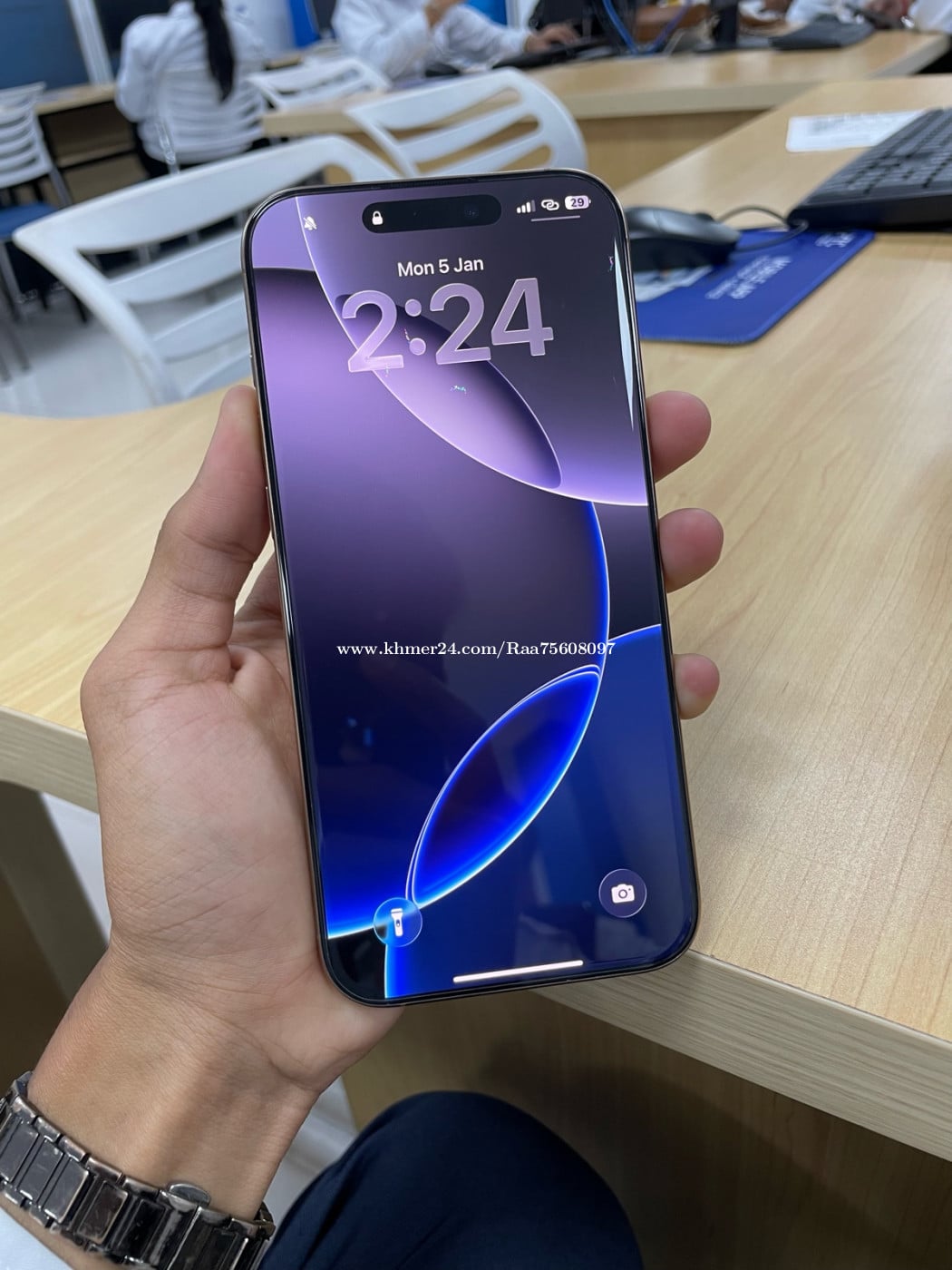 IPhone 16pro max 256g zin all only wifi អេក្រង់បារ៉តដូចរូប ប្រេីគ្មានបញ្ហា ប្រេីម៉ាស្លាញ់អត់រៀល ពិនណានៅពិននិងបងៗ យកប្រេីការនិងលេងហ្គេមsmooth មកមេីលតេ្តសបាន ទាក់ទងបាន telegram 0966705xxxClick To Call