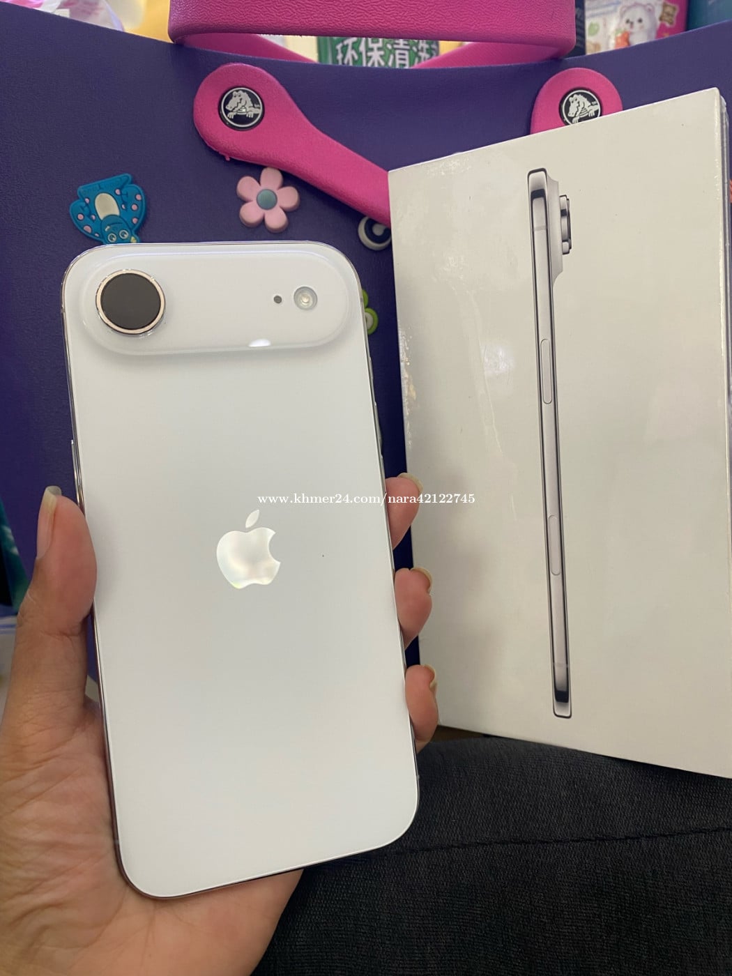 iPhone 17 Air- LL - Memory 256GB - cloud white - eSIM 2 - ថ្ម 100% - ម៉ាស៊ីនស្អាតដូចថ្មី មានប្រអប់ ថែម ដុំសាក ខ្សែសាក case screen