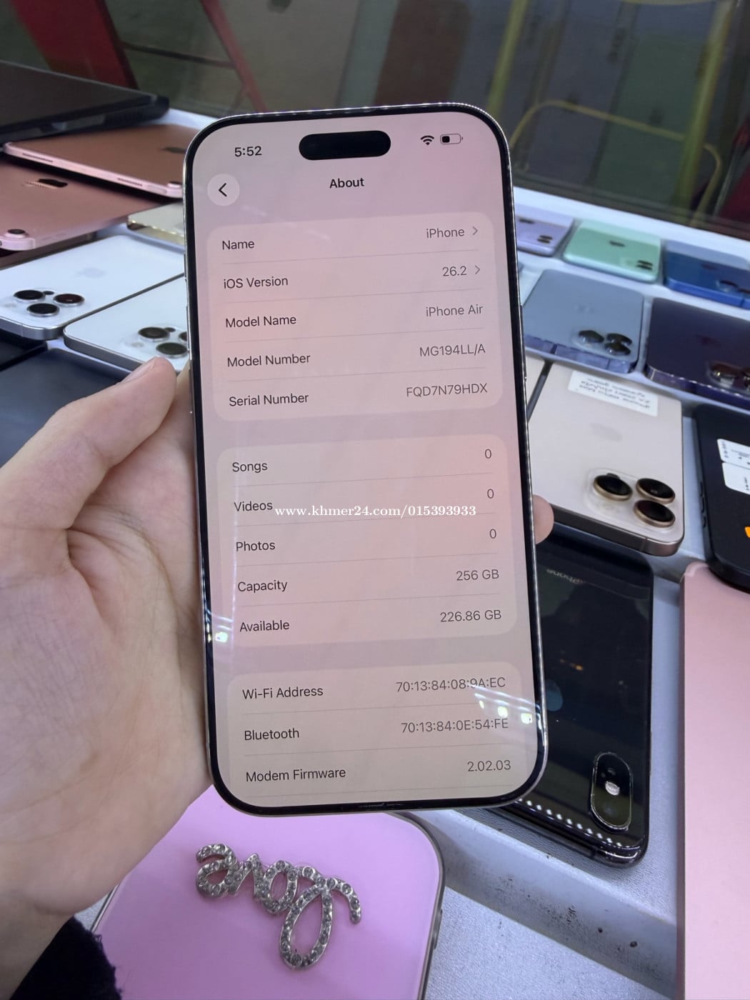 iPhone 17 Air (white), 256GB LL/A, នៅស្អាត99%,ថ្ម100% .លក់: 820$ កាន់បានថ្មីៗទៀតហេីយ .មានបង់រំលស់: មាន$400យកទៅប្រេីបាន .Free: ឆ្នាំងសាក, Case, Screen .ទីតាំង: នៅផ្សារបូរីពិភពថ្មីចំការដូង1 .Tel: 078343xxxClick To Call,01539393I’m