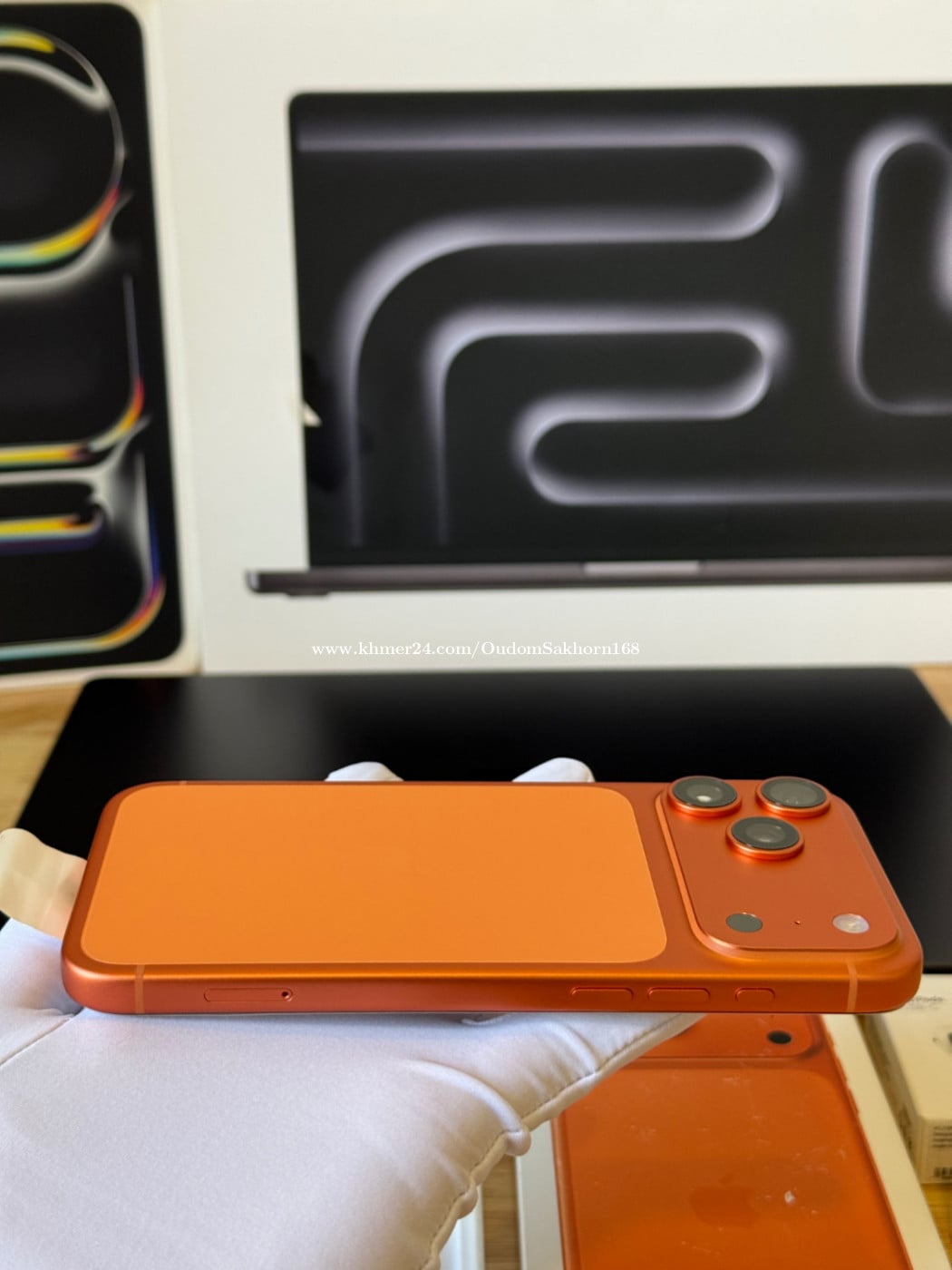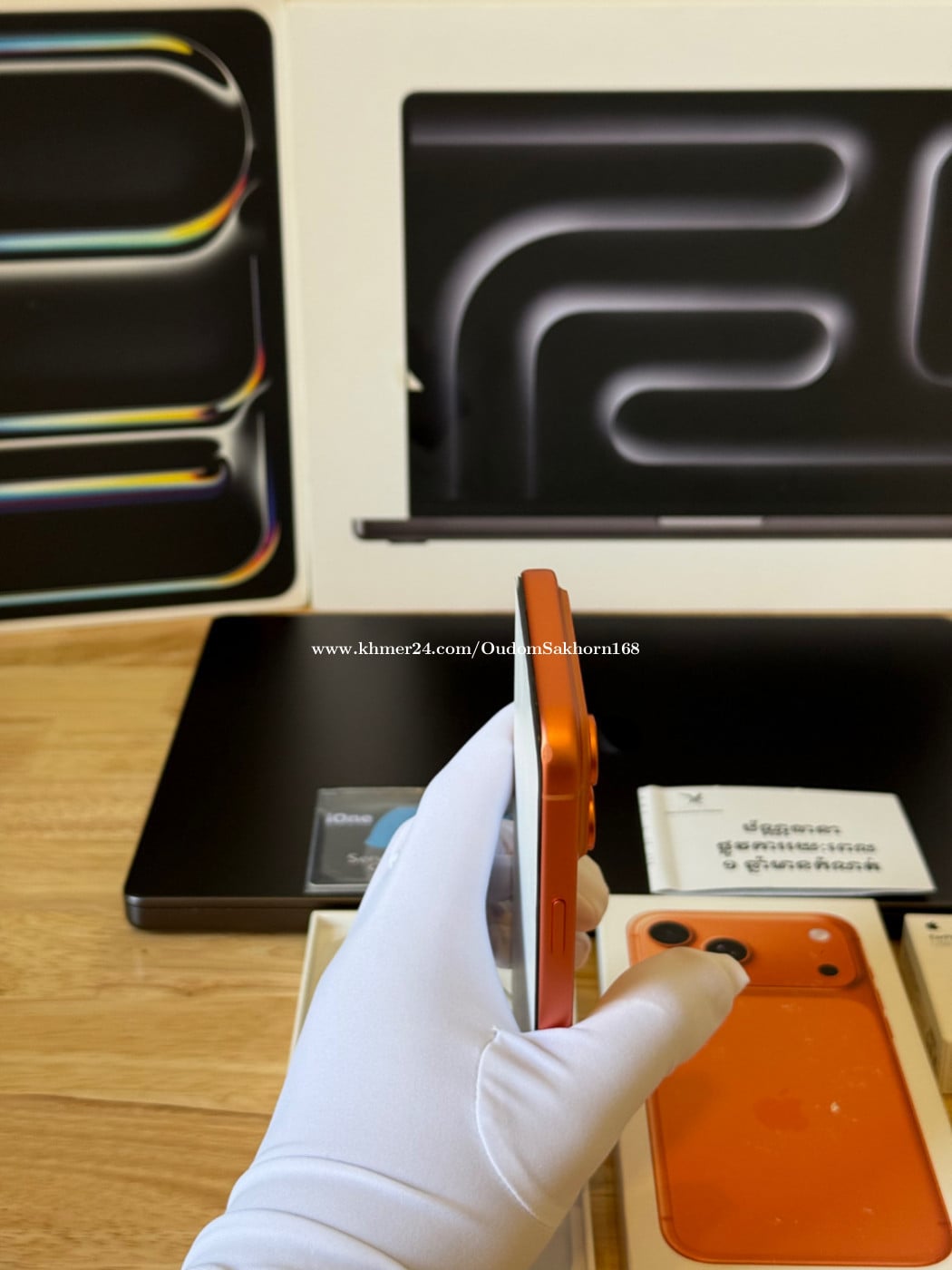 iPhone 17 Pro Max 512GB SIM 2 iPhone 17 Pro Max 512GB Cosmic Orage Model Code: CH ជា Model តែមួយគត់ក្នុងពេលឥលូវនេះដែលអាចប្រើប្រាស់សុីមកាតបាន 2 ក្រៅពីនេះ Model ZP, ZA, XA អាចប្រើសុីមកាតបាន 1 និង eSIM ហើយ Model LL ប្រើប្រាស់បានតែ eSIM ប៉ុណ្ណោះ កាលទិញថ្មីតម្លៃ $1999 ឥលូវលក់វិញតែ $1359 ប៉ុណ្ណោះ មានស្នាមបន្តិចដូចក្នុងរូប ក្រៅពីហ្នឹងនៅស្អាតដូចថ្មី Cycle Counts: 32 Battery Health: 100% iPhone 17 Pro Max OpenBox List iPhone 17 Pro Max 512GB Orage CH 99% = $1350 iPhone 17 Pro Max 512GB Blue ZA 99% = $1489 iPhone 17 Pro Max 512GB Orage XA 99% = $1499 iPhone 17 Pro Max 512GB Silver XA OpenBox = $1599 iPad Pro 13” M4 OpenBox List iPad Pro 13” M4 256GB SIM & WiFi OpenBox = $1099 iPad Pro 13” M4 256GB SIM & WiFi 99% = $1050 MacBook Pro 16.2" New Open Box List MacBook Pro 16" M4 Max, 16c, 40c, 128GB, 2TB OpenBox = $3999 M4 Pro 14c-20c | 24GB | 512GB New OpenBox = $2089 M3 Max 14c-30c | 36GB | 1TB OpenBox = $2199 M2 Pro 12c-19c | 16GB | 1TB (Used 99%) = $1389 M2 Pro 12c-19c | 16GB | 512GB OpenBox = $1299 MacBook Pro 14.2" New Open Box List M4 Pro 12c-16c | 24GB | 512GB OpenBox = $1659 Tel: 069770xxxClick To Call / 017776xxxClick To Call Telegram: https://t.me/SakhornOudom