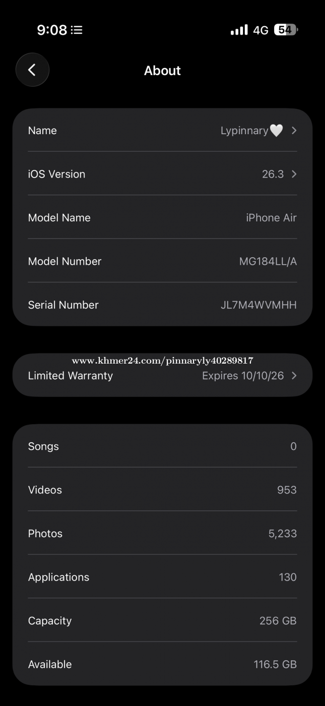 iPhone 17Air 256g black លក់ដូរសារី តម្លៃចរចា ថ្មី99%
