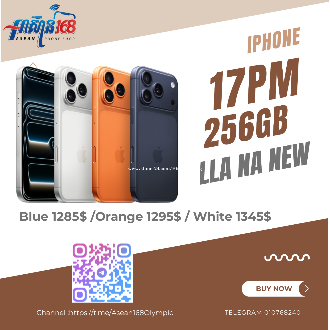 iPhone 17PM 256GB LLA BLUE ORANGE 1285$ តម្លៃនេះមានរួមជាមួយ case screen ឆ្នាំងសាកហ្សុីន ធានា 1ឆ្នាំលើដុំសាក ធានា ម៉ាស៊ីន ១ខែពីហាង -------------------------- 010768xxxClick To Call/078446xxxClick To Call 8AM-9PM Channel Telegram https://t.me/Asean168Olympic Telegram https://t.me/+85510768240 ------------------------- អាសយដ្ឋាន៖ ផ្ទះលេខ 99 ផ្លូវ 199 កែង318 ក្បែរវីរៈប៊ុនថាំអូរឡាំពិច ផែនទី https://goo.gl/maps/tdV1VG4bB15vaTDE9