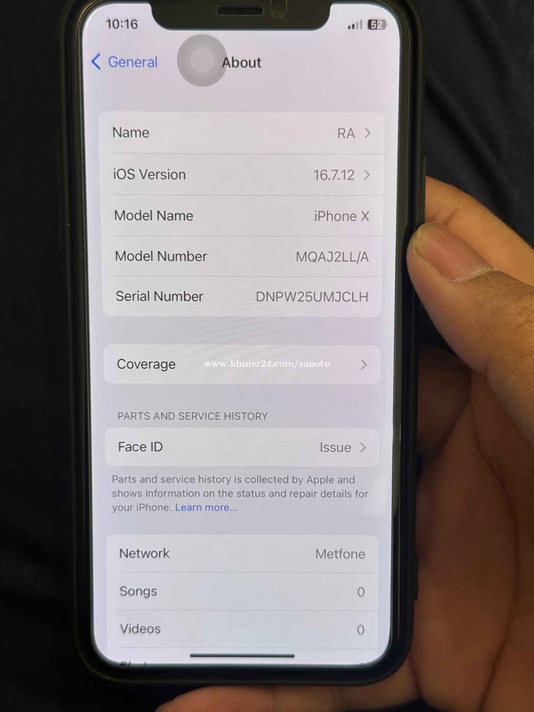 Iphone X - 64G អត់ជាប់អ្វីទាំងអស់ Camera ច្បាស់មុខក្រោយ បញ្ចាប់: ស្កេនចេញដូចក្នុងរូប អត់ដឹងមកពីអ្វីទេ conditions 97% (ដូចក្នុងរូប) បែកខ្នងក្រោយបន្តិច (ចង់វៃដូរក៏បាន តែសុំសល់លុយខ្លះ)