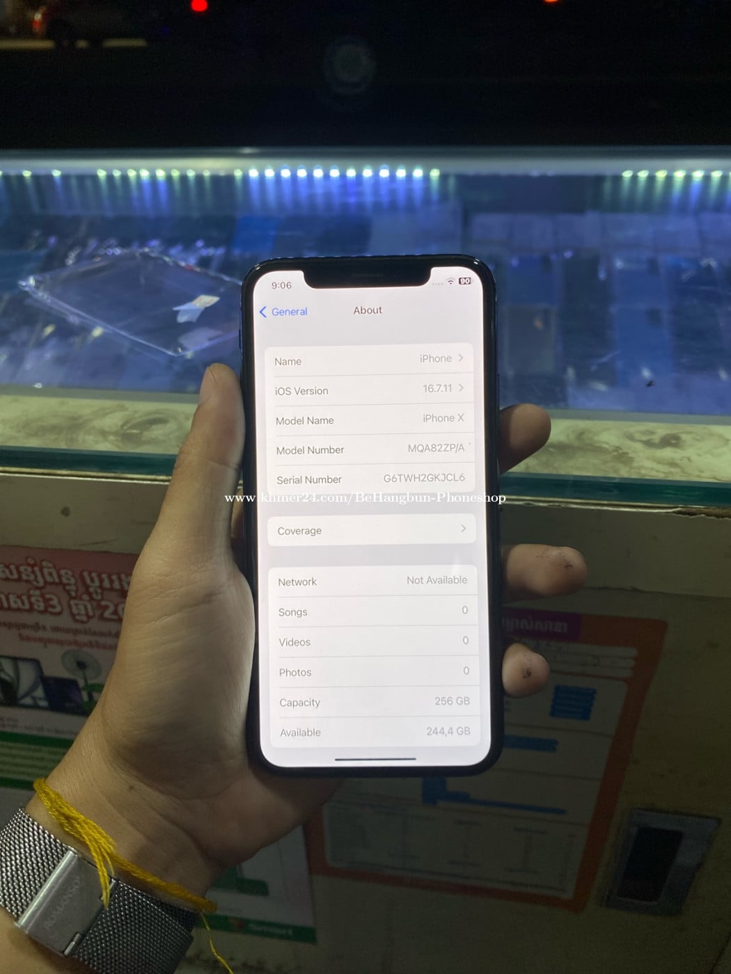 iPhone X 256G មួយទឹកស្អាត98.99% មានស្កេន ធានាម៉ាសុីនហ្សុីន អេក្រង់ហ្សុីន នឹងធានាការប្រេីប្រាស់រយៈពេល15ថ្ងៃ មានឆ្នាំងសាក មានបង់រំលស់ជាមួយហាង មានសេវ៉ាដឹកជញ្ជូន25ខេត្ត-ក្រុង ទីតាំង : ជិតស្តុបលូប្រាំ ស្ទឹងមានជ័យ Tel : 099777xxxClick To Call / 081336xxxClick To Call / 0972312xxxClick To Call