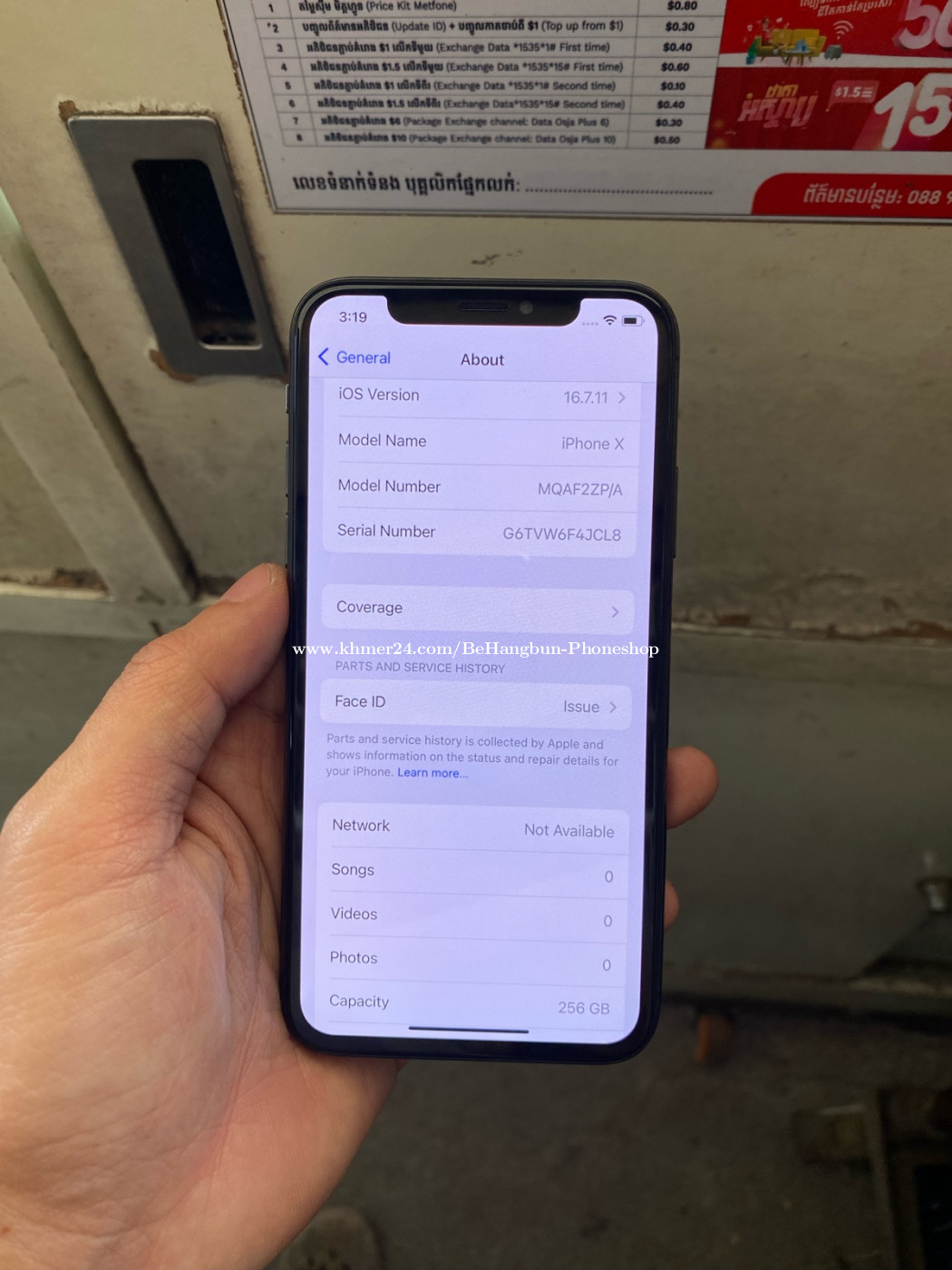 iPhone X 256G មួយទឹកស្អាត98.99% អត់ស្កេន អេក្រង់GX ធានាម៉ាសុីនហ្សុីន នឹងធានាការប្រេីប្រាស់រយៈពេល15ថ្ងៃ មានឆ្នាំងសាក មានបង់រំលស់ជាមួយហាង មានសេវ៉ាដឹកជញ្ជូន25ខេត្ត-ក្រុង ទីតាំង : ជិតស្តុបលូប្រាំ ស្ទឹងមានជ័យ Tel : 099777xxxClick To Call / 081336xxxClick To Call / 0972312xxxClick To Call