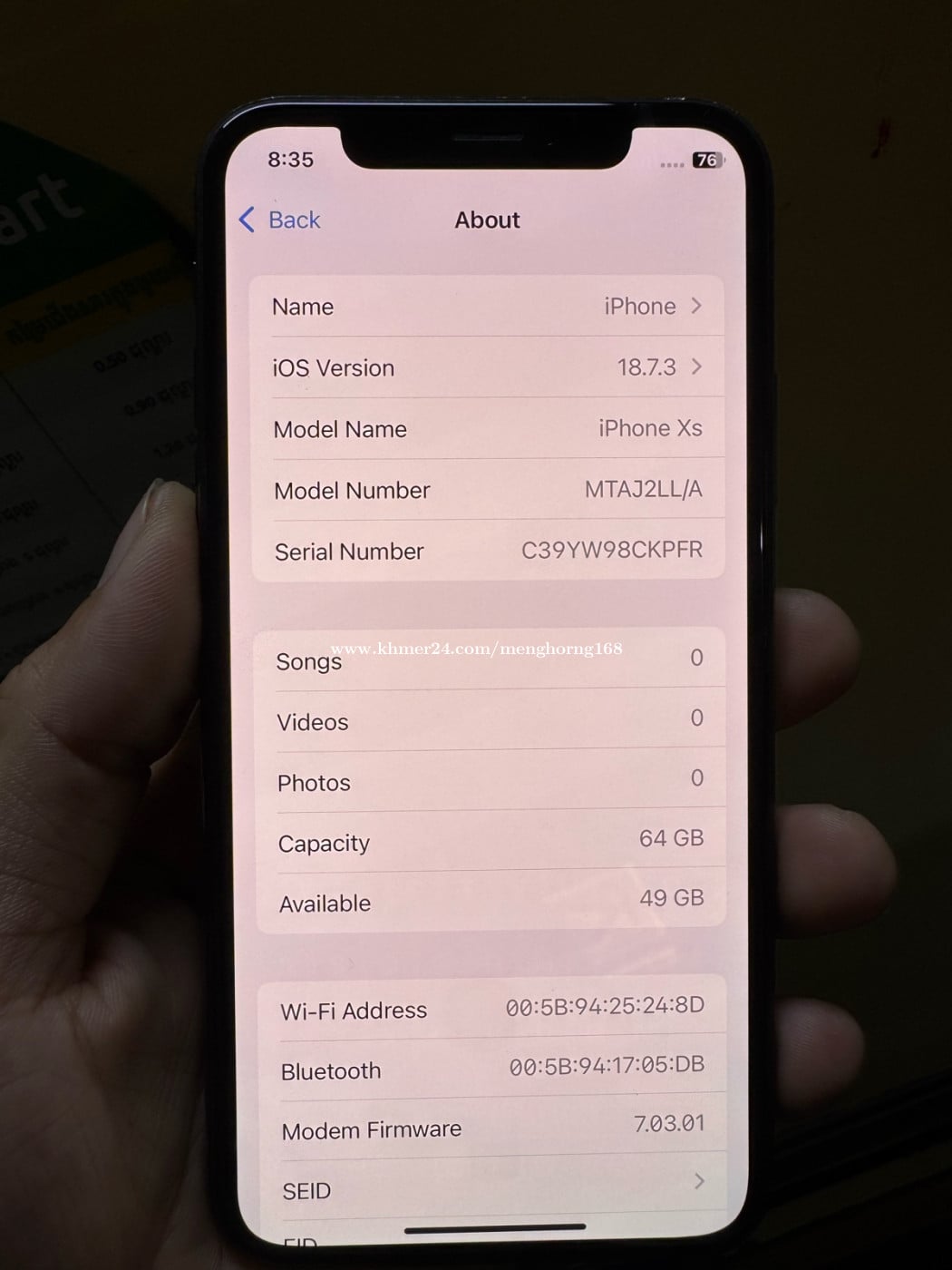 iPhone XS 64g LL/A ម៉ាសុីនស្អាត អេក្រង់original លក់140$