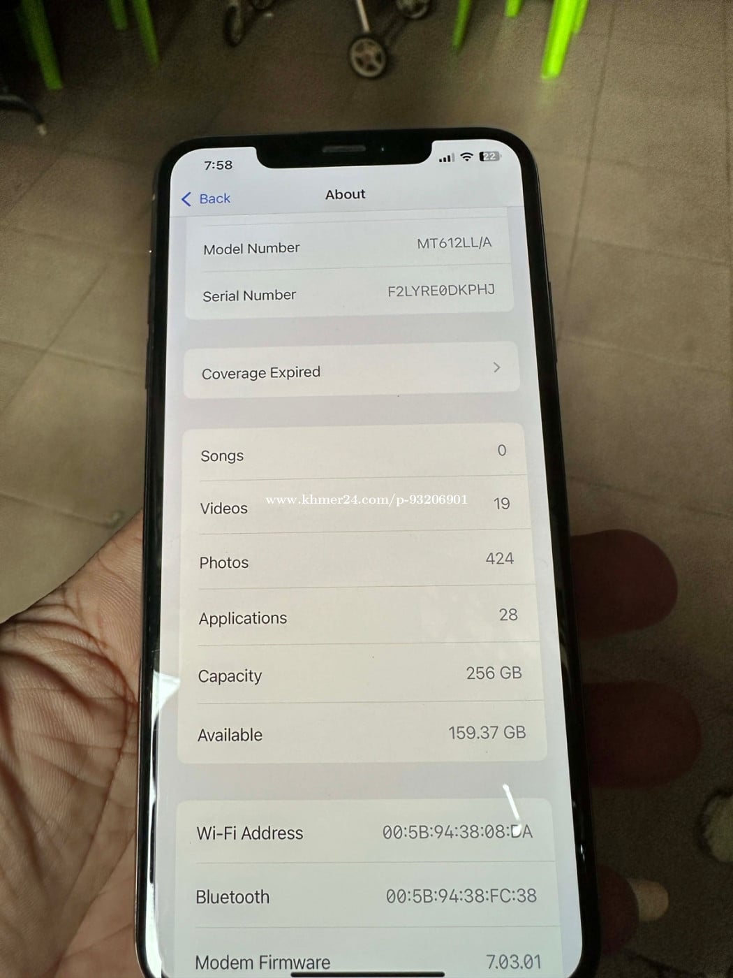 iPhone XsMax 256G 95% 135$ Zin all អត់ខូច អត់ជាប់អីទាំងអស់