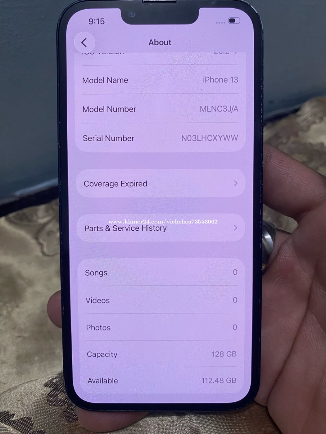 iphone13 128GB Zin all សម្បកស្ទើរបើដូរគិត250$អោយ ពណ៏រើសបាន ធានា7ថ្ងៃ ហេងៗបង