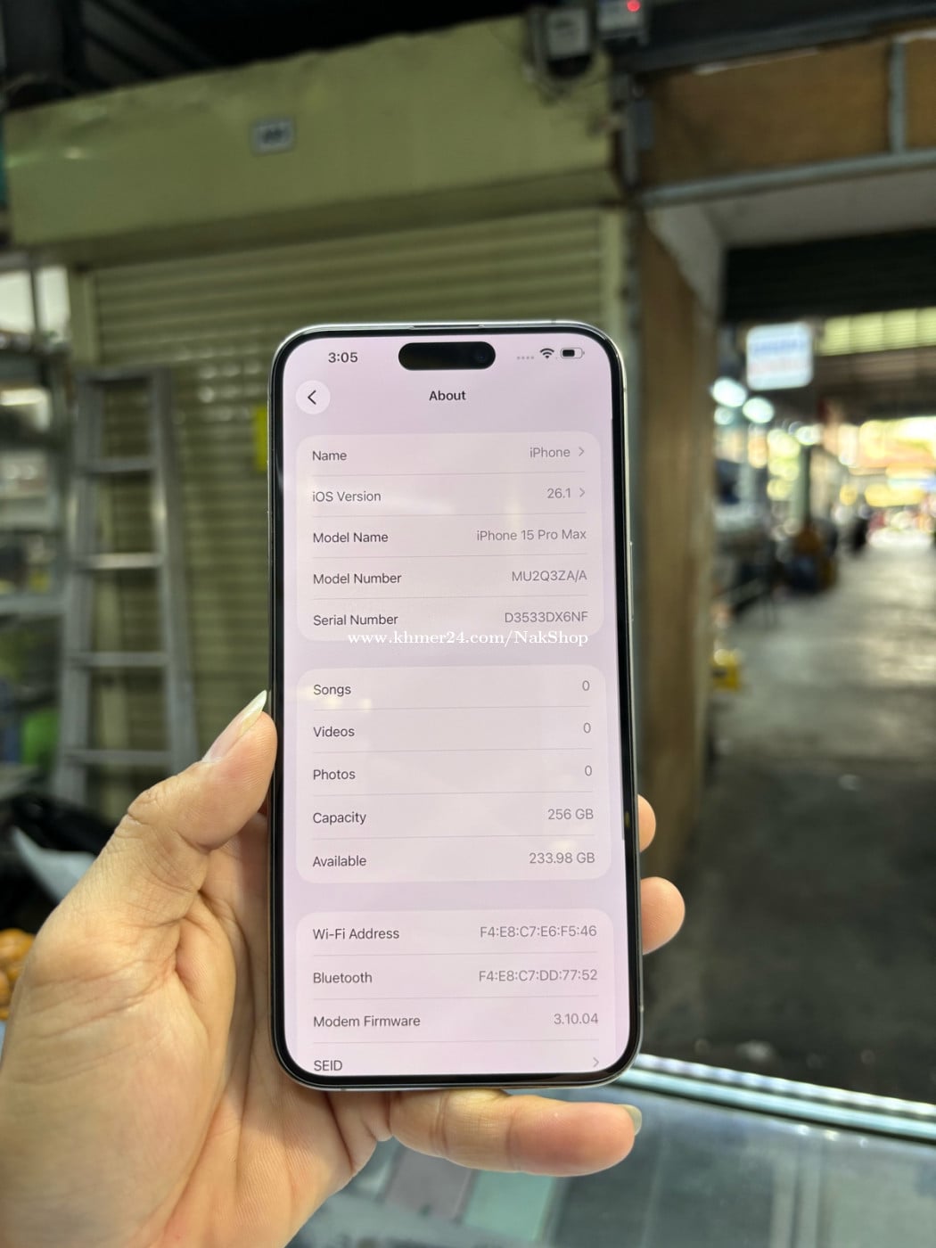 Iphone15Pro max 256G ZA sim2 ម៉ាសុីនសានុំណែន ថ្ម87%