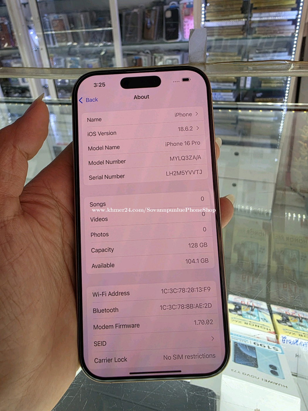 Iphone16 pro 128G ZA sim2 ថ្ម93% ស្អាត99% រាងតូចច្រឡឹងinternetលឿន លេងអត់ក្តៅ បងប្អូនណាចាប់អារម្មណ៍មាននៅហាងពេជ្រសុវណ្ណពន្លឺ សុវណ្ណឧត្តម tel: 081335xxxClick To Call/ 017553xxxClick To Call