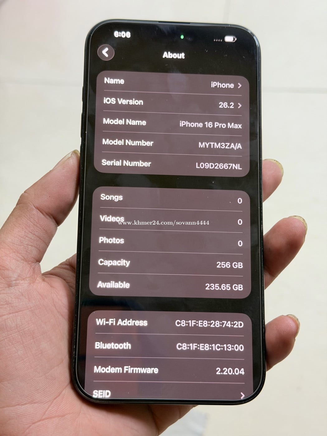 Iphone16 Pro Max 256G Z/A និយាយពីស្អាត99% ធានាហ្សីន100 % ថ្ម 96% មានខ្សែសាក ធានា