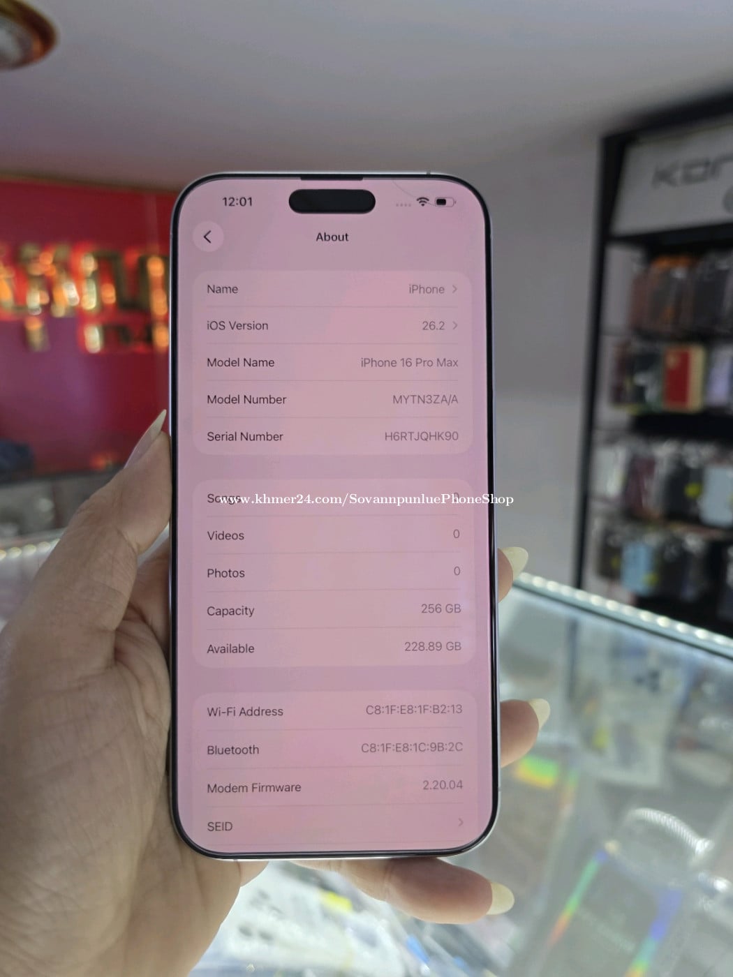 iPhone16pro max 256G Za sim2 ថ្ម99% ធានាហ្សីនសុំនុំ ស្អាត99%ថតស្អាត internet លេងអត់ក្តៅ បងប្អូនណាចាប់អារម្មណ៍មាននៅហាងពេជ្រសុវណ្ណពន្លឺ នឹងហាងសុវណ្ណឧត្តម tel: 081335xxxClick To Call/ 017553xxxClick To Call