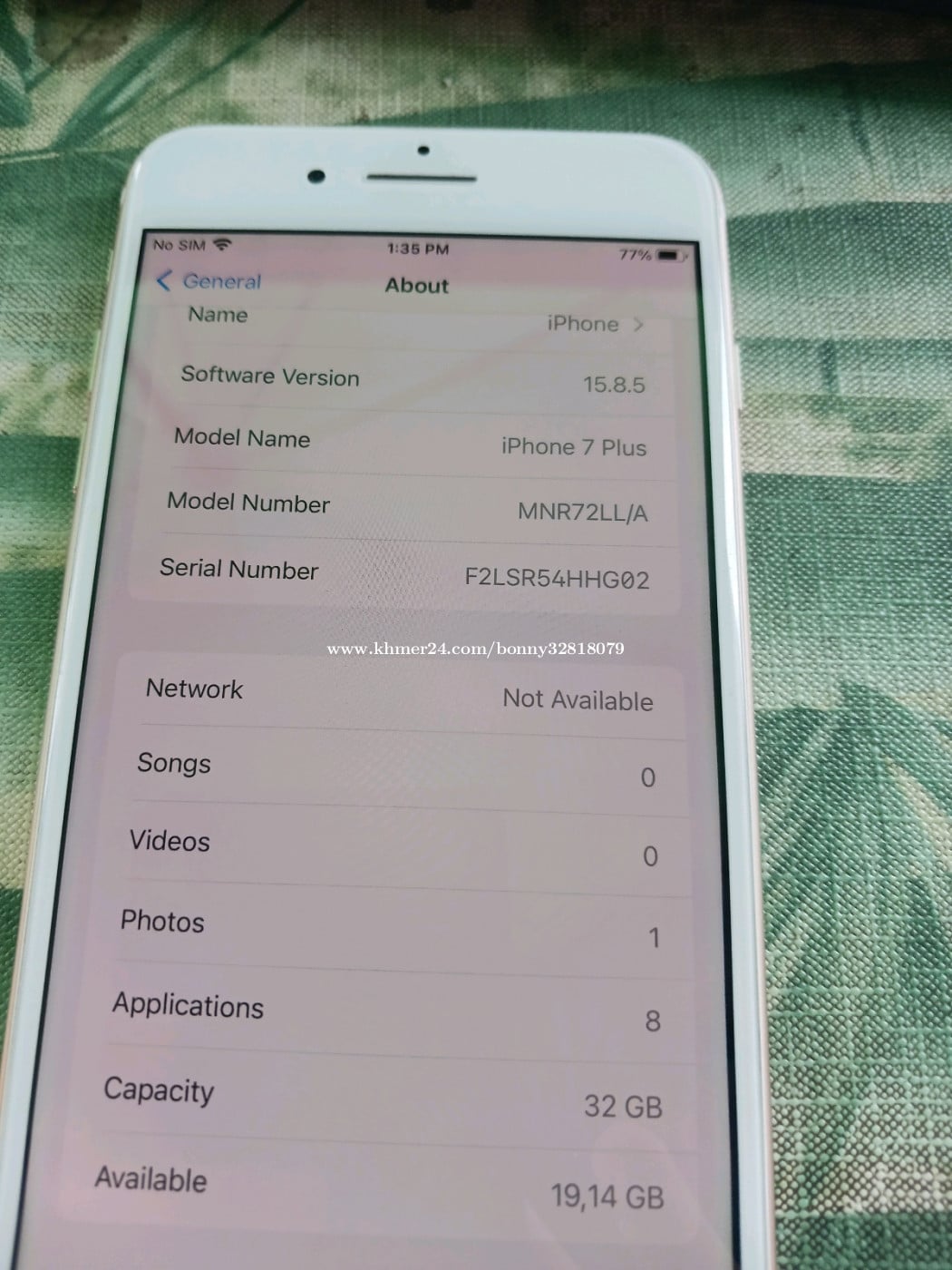 Iphone7+. 32G ស្កេន អេក្រង់ហ្សីន cameraមុកស្អាត ខាងក្រោយខូចx1. X2 ដើរធម្មតា only phone