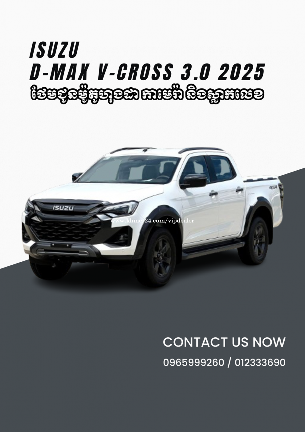 ទិញ 𝟏 បានដល់ទៅ 𝟑 រួសរាន់ឡើងចំនួនមានកំណត់ 𝟏. ម៉ូតូ .𝐇𝐨𝐧𝐝𝐚 𝐃𝐫𝐞𝐚𝐦 𝟐𝟎𝟐𝟔 𝟏 គ្រឿង 𝟐. 𝐂𝐚𝐦𝐞𝐫𝐚 𝐑𝐞𝐜𝐨𝐫𝐝 𝟑. 𝐏𝐥𝐚𝐭 𝐍𝐮𝐦𝐛𝐞𝐫 [ ស្លាកលេខ ] 🚘𝐈𝐬𝐮𝐳𝐮 អ្នកជំនាញលើម៉ាសុីនម៉ាស៊ូតប្រើរថយន្ដម៉ាស៊ូតត្រូវតែ 𝐈𝐬𝐮𝐳𝐮. 𝐈𝐬𝐮𝐳𝐮 𝐃-𝐦𝐚𝐱 𝐕-𝐜𝐫𝐨𝐬𝐬 ដំណើរការដោយម៉ាសុីនម៉ាស៊ូត 𝟑.𝟎𝐋 ជំនួយដោយ 𝗩𝗚𝗦 𝗧𝘂𝗿𝗯𝗼 𝗖𝗵𝗮𝗿𝗴𝗲𝗿 𝗜𝗻𝘁𝗲𝗿𝗰𝗼𝗼𝗹𝗲𝗿 𝗲𝗻𝗴𝗶𝗻𝗲 𝘄𝗶𝘁𝗵 𝗘𝗹𝗲𝗰𝘁𝗿𝗼𝗻𝗶𝗰 ធ្វើអោយម៉ាសុីនផលិតមានកំលាំងបានគ្រប់គ្រាន់ រត់បានស្រួល នឹង សន្សំសំចៃប្រេង (𝟔-𝟕𝐋/𝐤𝐦) . ⚙️ ធានារយះពេល 𝟑 ឆ្នាំ ឬ 𝟏𝟎𝟎.𝟎𝟎𝟎𝐤𝐦 សម្រាប់ព័ត៌មានលម្អិត សូមទំនាក់ទំនងផ្នែកលក់រថយន្ត៖ ☎️0965999xxxClick To Call ☎️ 012333xxxClick To Call 👉 𝐓𝐞𝐥𝐞𝐠𝐫𝐚𝐦 : https://t.me/ISUZU_VIP 👉 KH24 : https://www.khmer24.com/vipdealer