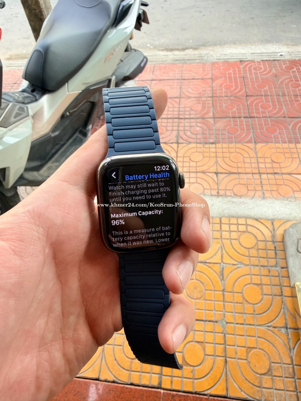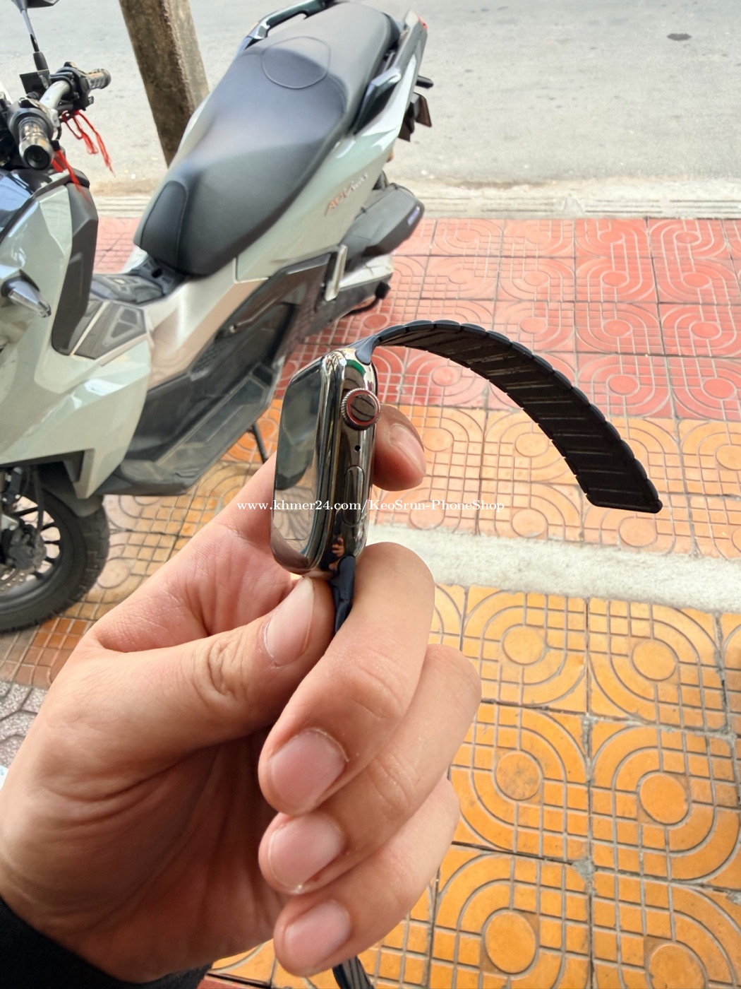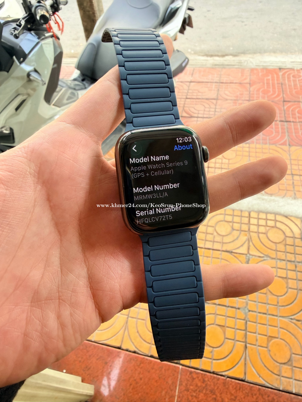 Iwatch S9 45MM ( Stainless Steel ) [ GPS+ Cellular ]64g ថ្មនៅ96% ឥវ៉ាន់ប្រេីផ្ទាល់ អេក្រង់ស្អាត តួរ98% តម្លៃ 375$ ( No box ) Telegram: 087233xxxClick To Call