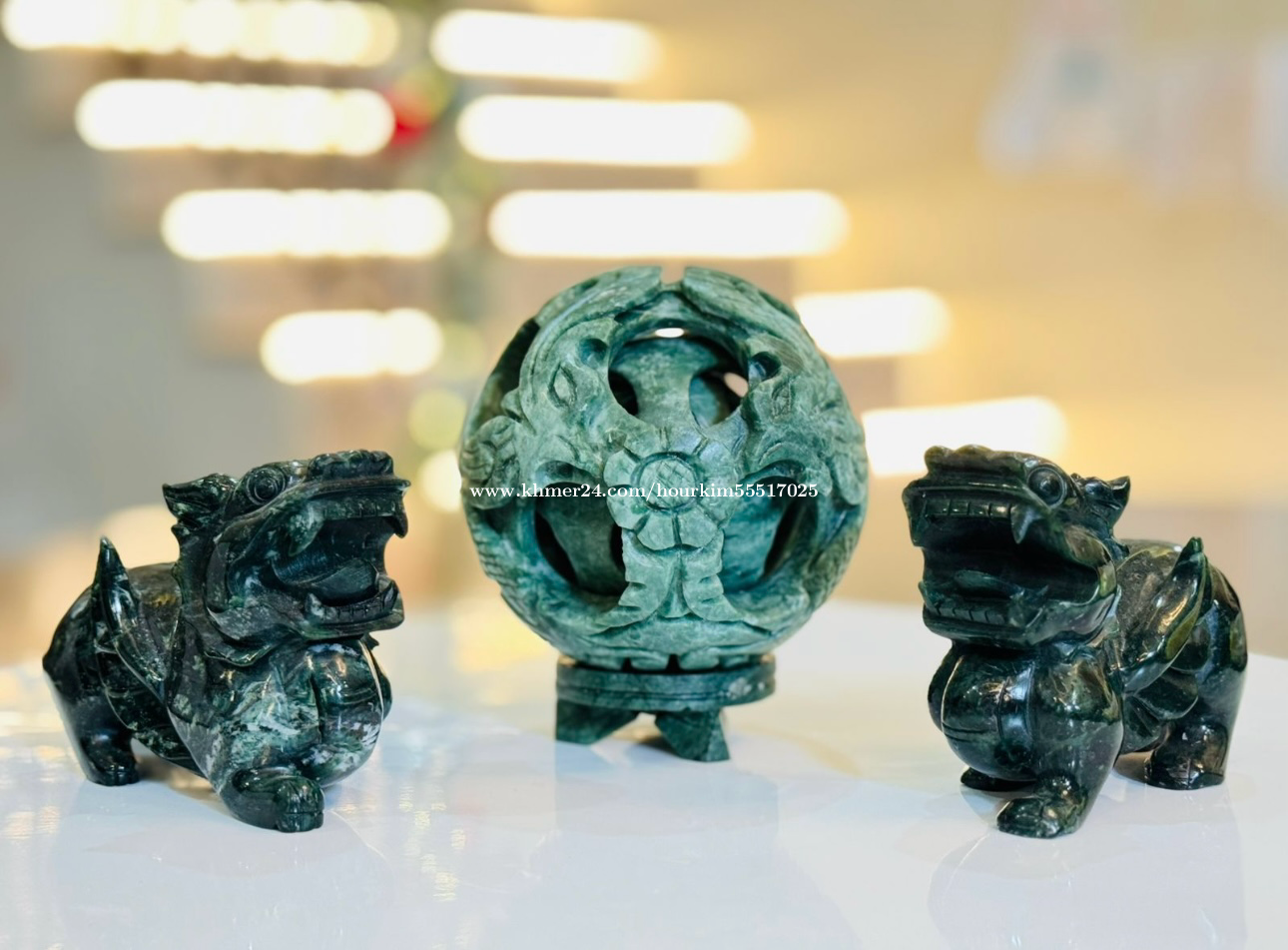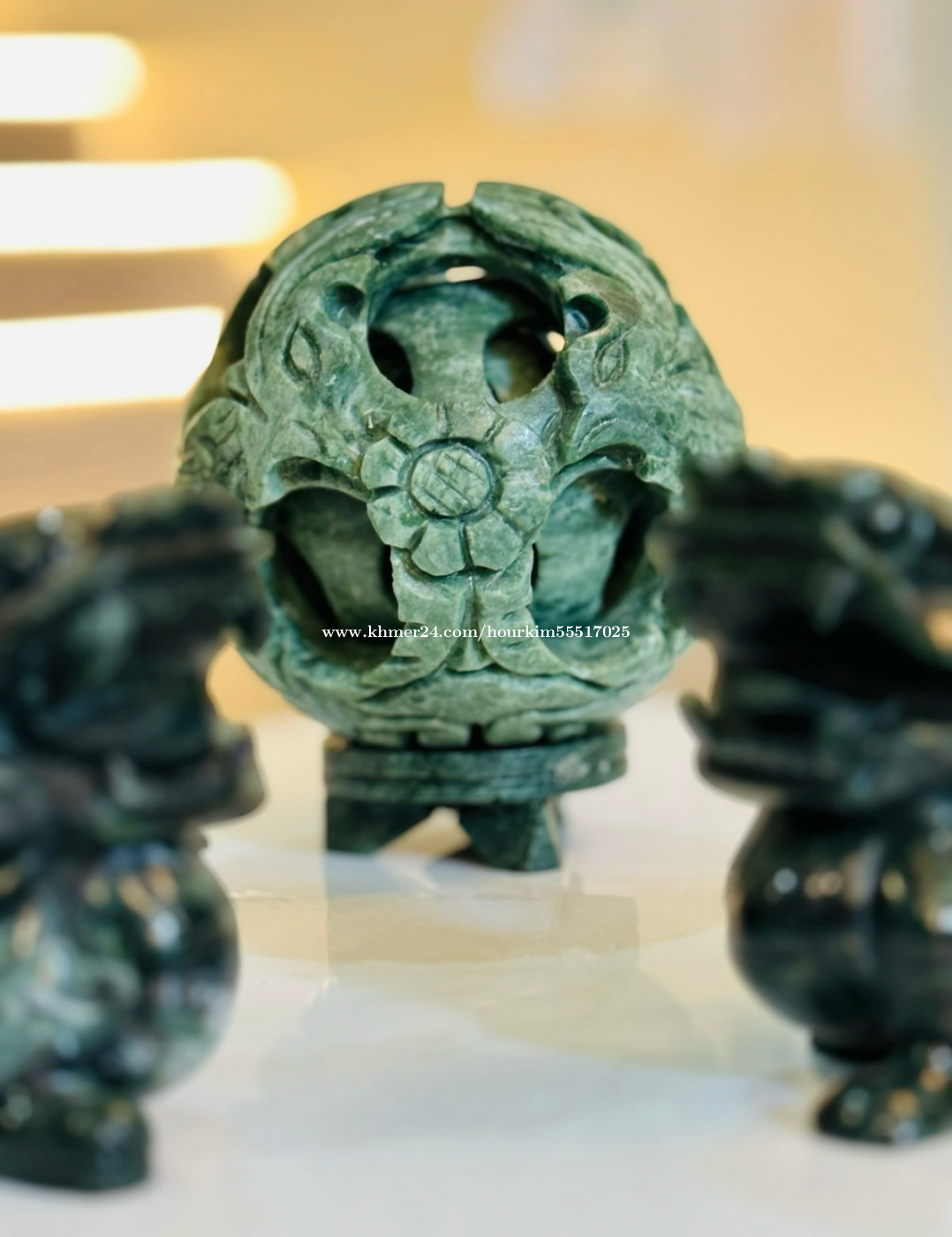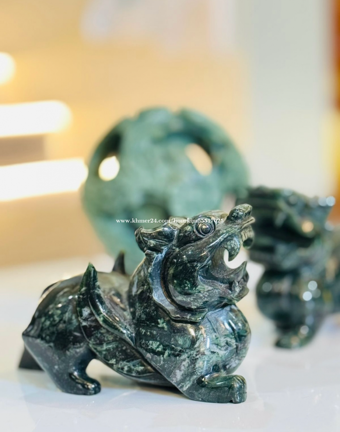 *Jade - Sphere of Happiness* ⭐️⭐️⭐️⭐️⭐️ Happiness Spheres, also known as Lucky Balls or Family Generation Balls, are carved into three layers from one piece of Jade. The three spheres float freely inside each other, and each of the three layers represents a generation. They bless you with love, happiness, and unity, just like a family does! Each of the twelve holes symbolizes twelve months to bring peace, harmony, and prosperity throughout the year. Jade is known to be a powerful lucky charm, helping you attain your goals and dreams. It allows you to see past any-self imposed limitations so you can manifest your dreams into reality! Jade symbolizes strength, development, and prosperity, and brings in tranquility, wisdom, and growth—both financially and spiritually! Wealth Attraction: Pixiu are believed to crave the smell of gold and silver and bring money to their owners. According to legend, the creature has a mouth but no anus, meaning it can swallow wealth from all directions without letting it escape, sym Telegram : 077591xxxClick To Call