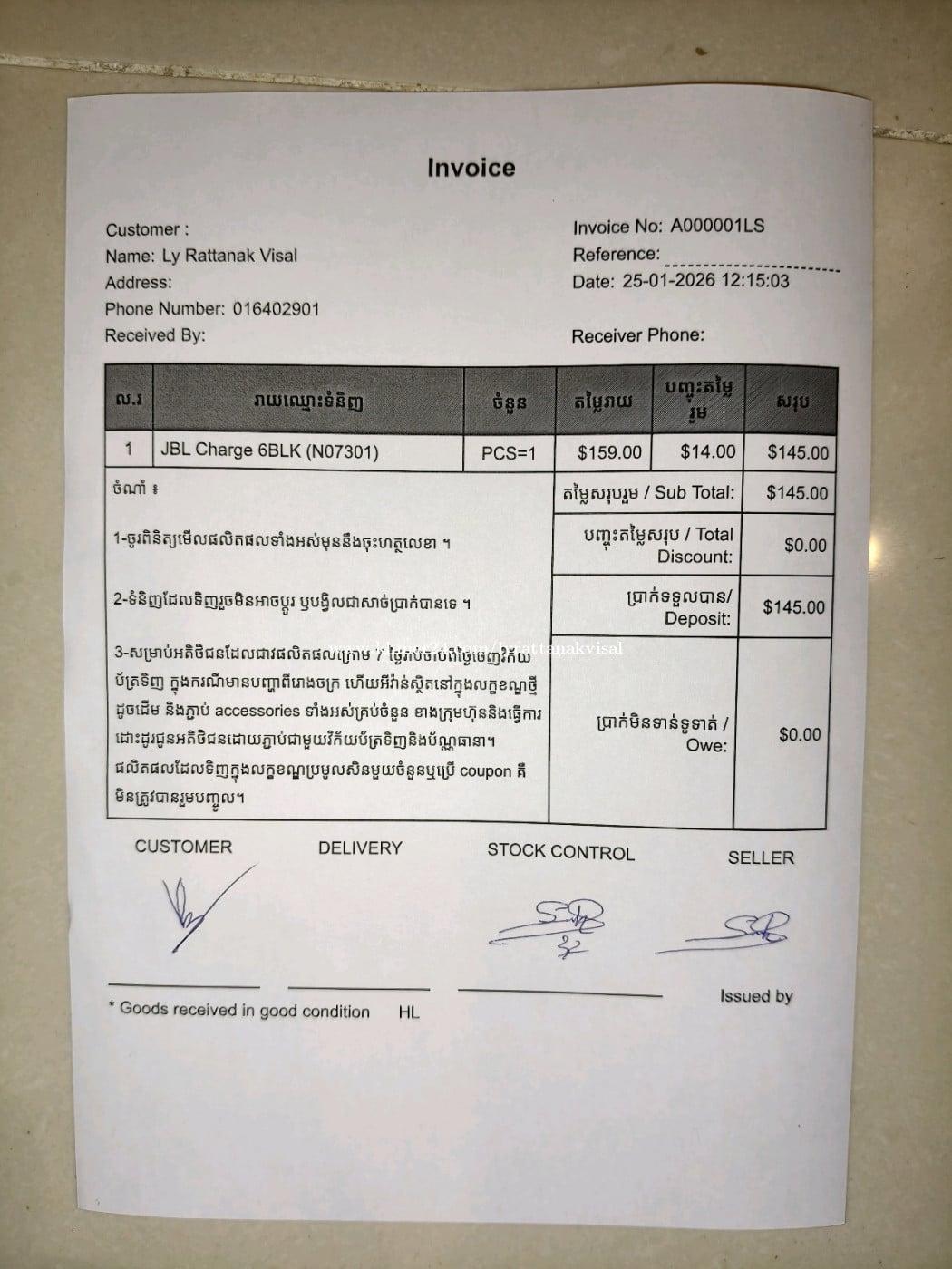 ទិញពីក្រុមហ៊ុន បាន 5 ថ្ងៃ ។ ចង់លក់ដូរសេរី។ 120$ បេី មិន 100% ។ អ្នកមកមេីល បាស់ ខ្ញុំថាមិន 100% ខ្ញុំថែមលុយអោយវិញ 50$ Free ។ លេខ 016402xxxClick To Call015924xxxClick To Call ។ មកមុនបានមុន បងៗ JBL charge 6 original just unboxing
