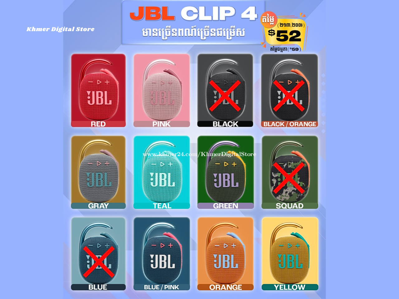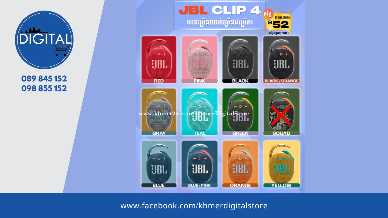 JBL Clip 4 Portable Bluetooth Speaker - Waterproof and Dustproof IP67, Mini Bluetooth Speaker for Travel, Outdoor and Home ______________ โ Warranty: 6 Months โ FREE Delivery ๐ Khmer Digital Store | In the Shadow of Digital World ๐จ Telegram | 089845xxxClick To Call | 098855xxxClick To Call ๐จ Channel: https://t.me/KhmerDigitalStore