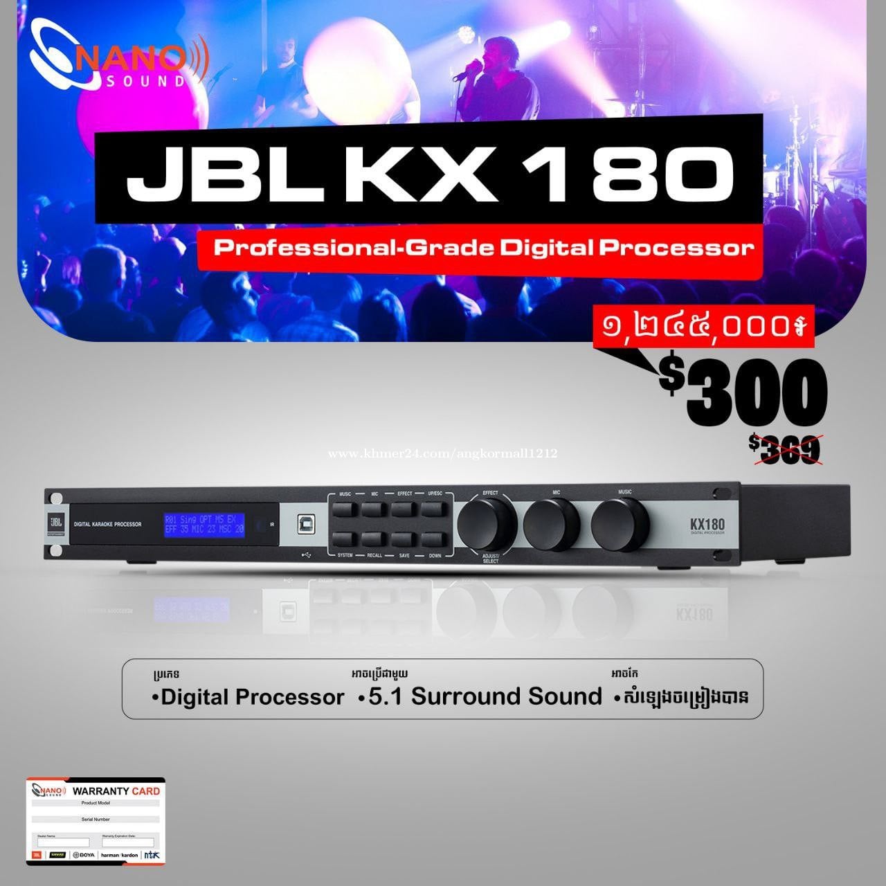 អេកូ (Echo) JBL KX180 - ប្រភេទ Digital Processor - អាចប្រើជាមួយ 5.1 Surround Sound - អាចកែសំឡេងច្រៀងបាន